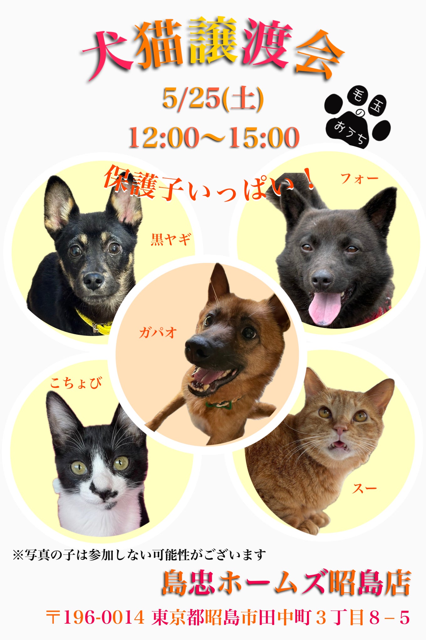 トライアル予定や、体調を見て参加する保護子は決まるので、まだどの子が参加するかはお伝えできませんが、気になる子がいましたら是非お越しください!