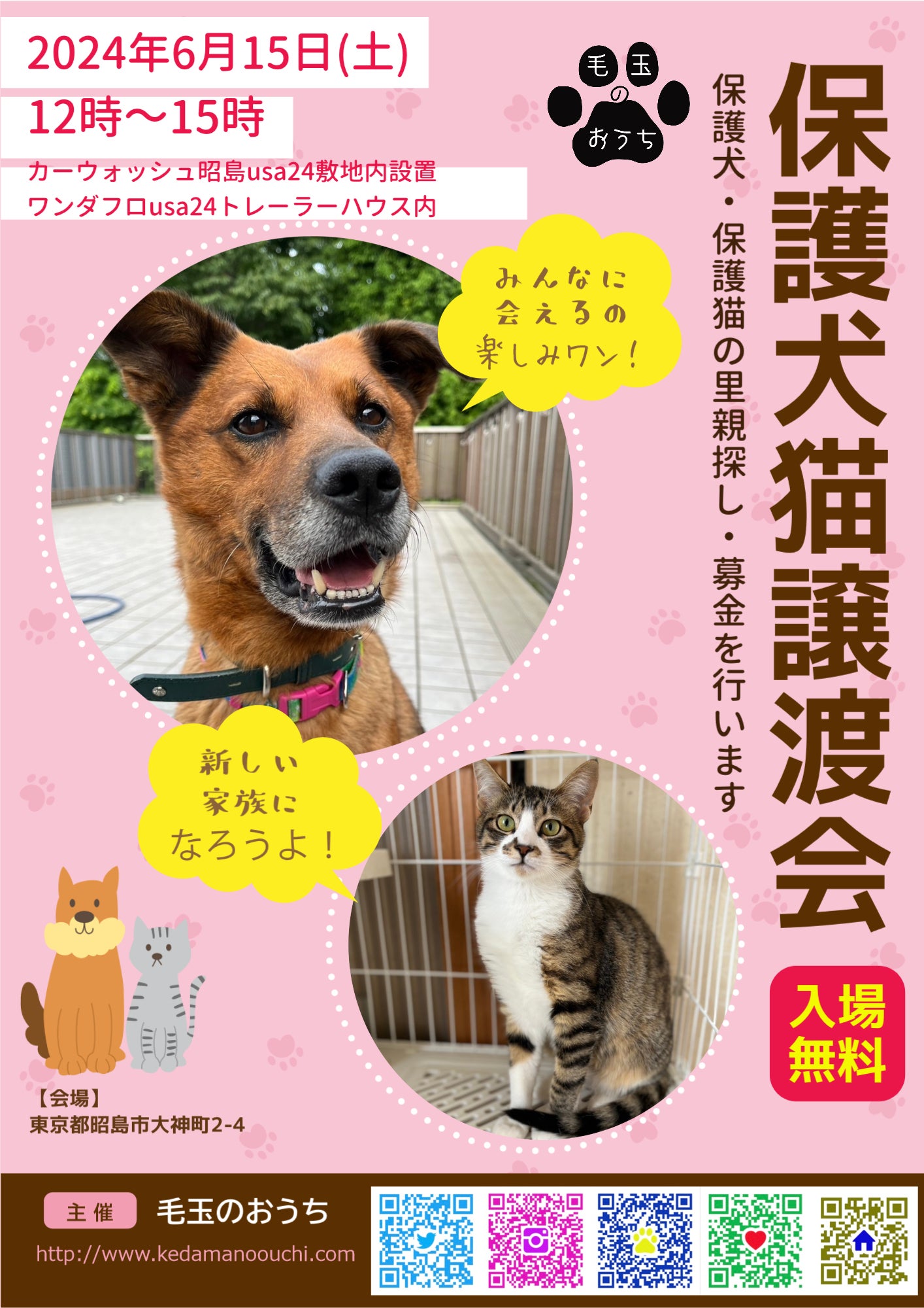 そして、6/15には以前にも譲渡会をさせて頂いたワンダフロ昭島usa24さんのトレーラーハウスにて譲渡会があります。