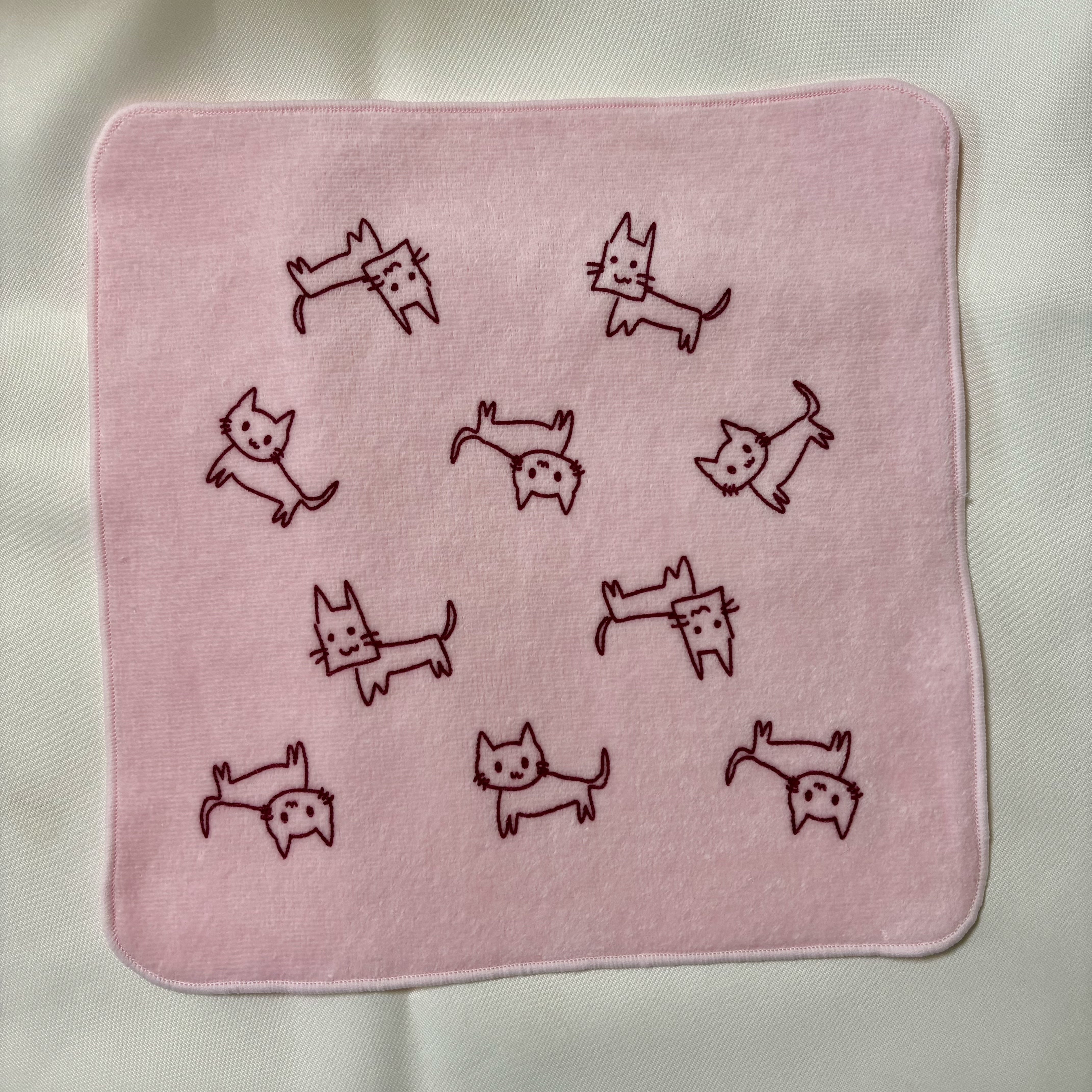 ピンクのミニタオル。