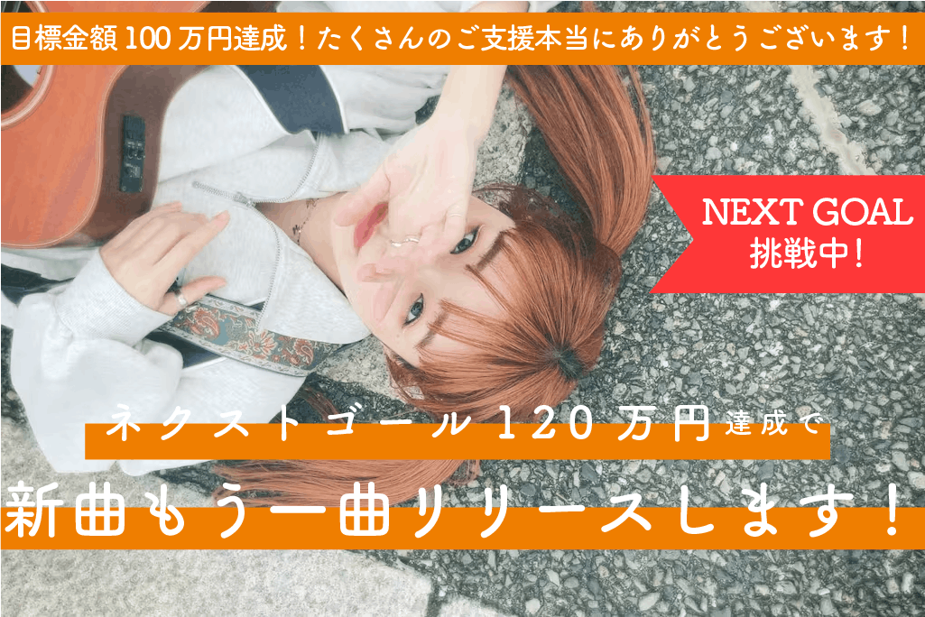 2024/04/10 18:00皆様のたくさんの応援のおかげで、無事、120%までゴールを達成することができました!(報告が遅くなってしまいごめんなさい。)そして…約2ヶ月半のクラウドファンディング期間もついに残すところ5日になりました。最後の足掻きでどうしても達成したい目標であるMVの製作をするために130万のネクストゴールを設定します!ワンマンの会場チケット、配信チケット共にまだ空きがございます。グッズも続々完成してきています。地方ライブもまだもう1県くらい行きたいな。今、達成したいこと全部このクラファンに詰め込んでます。どうか私の最後の悪あがきにご支援のほどよろしくお願いします!!待望のグッズ…公開しちゃう♡全て自分でデザインしました!こちらのグッズが欲しい!って方は下↓の水色のリターンからご支援ください!(ちなみにこのリターン、あと5名からのご支援があれば、130%のネクストゴールも同時に達成できます!!)あと5日!!最後まで諦めずに頑張ります!応援よろしくお願いします! もっと見る