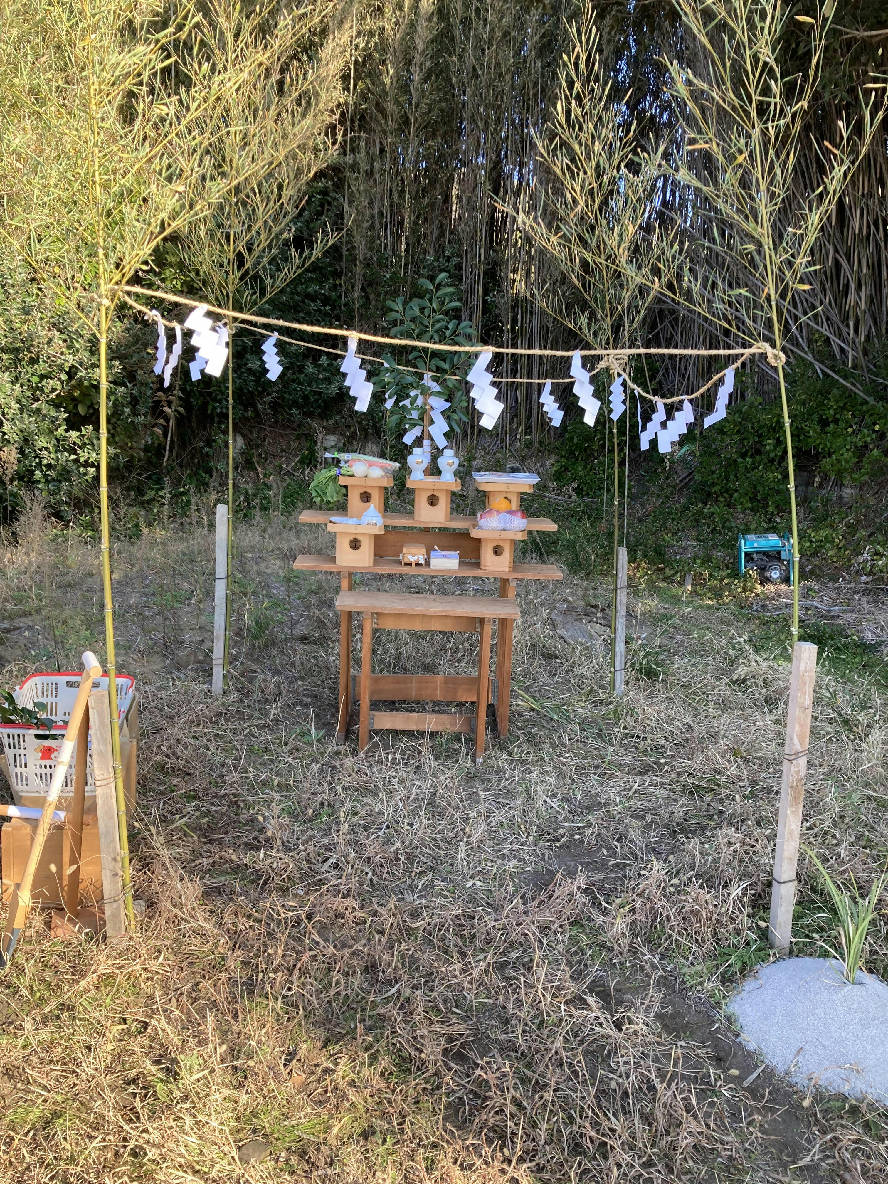 自己資金で南房総市白浜町滝口で水平線を見渡せる土地を購入し、銀行から事業融資をしてもらい建物の建築に入っています。2023年11月に地鎮祭を行い、ちょうど土地を整地してこれから建築が始まります!