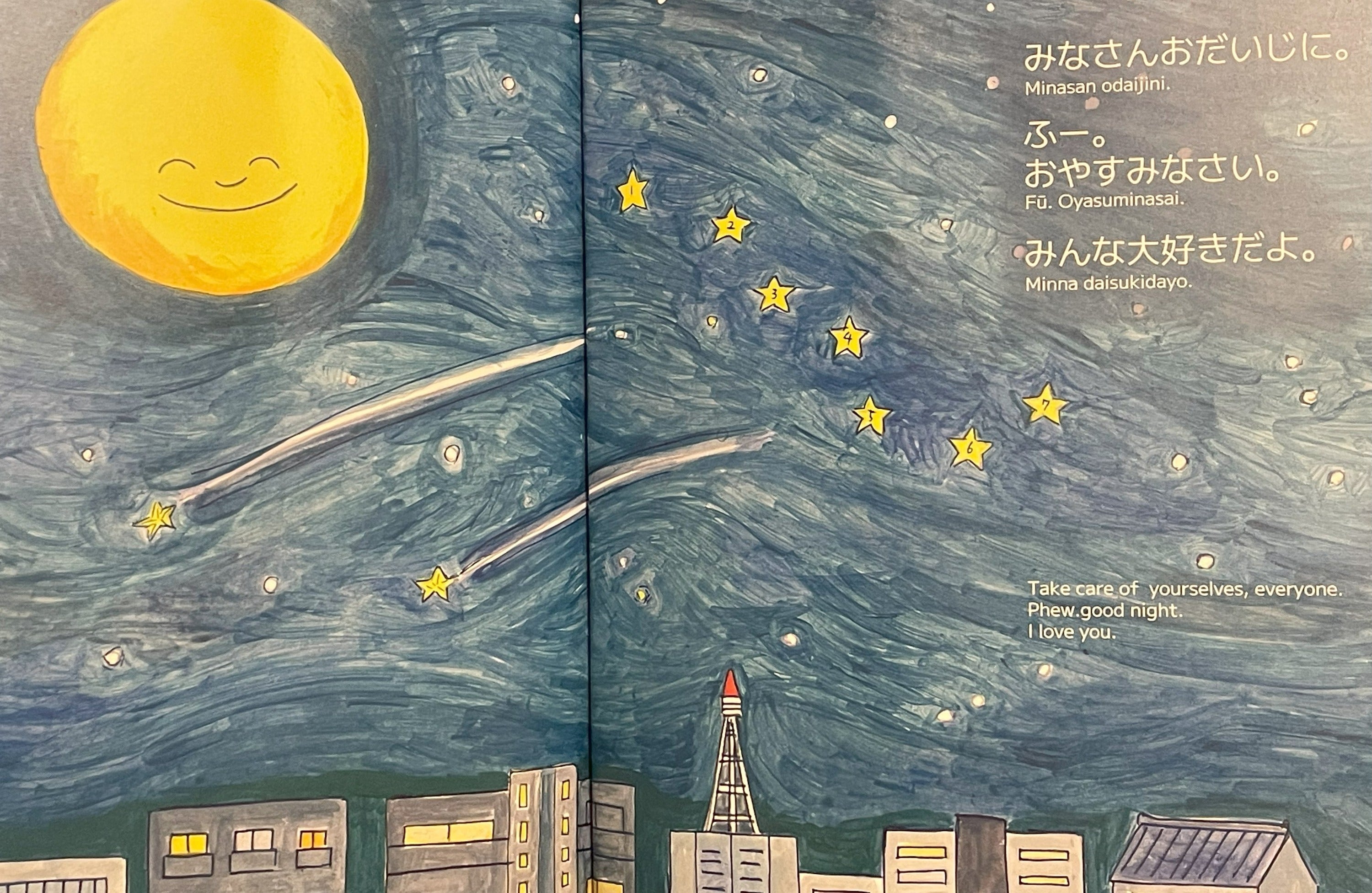 ◆「もう一回読んで」のリクエストに応えやすい長さにしました。◆一日の挨拶をいれました。◆「ありがとう」「ごめんなさい」をいれました。◆お子さんが文字を読めた時に、お父さんが感動を味わえるように絵の中に「ひらがな」や「数字」を入れました。◆私自身の経験から幸せを引き寄せる「ついてるついてる」をいれました。◆「あ、お、ふー」など言葉にこだわりました。◆「ハート」が隠されています。お子さんが気づいたとき一緒に喜んでください。詳細については絵本の「あとがき」をご覧いただいてから読み聞かせしてくださるとより一層楽しくなります。
