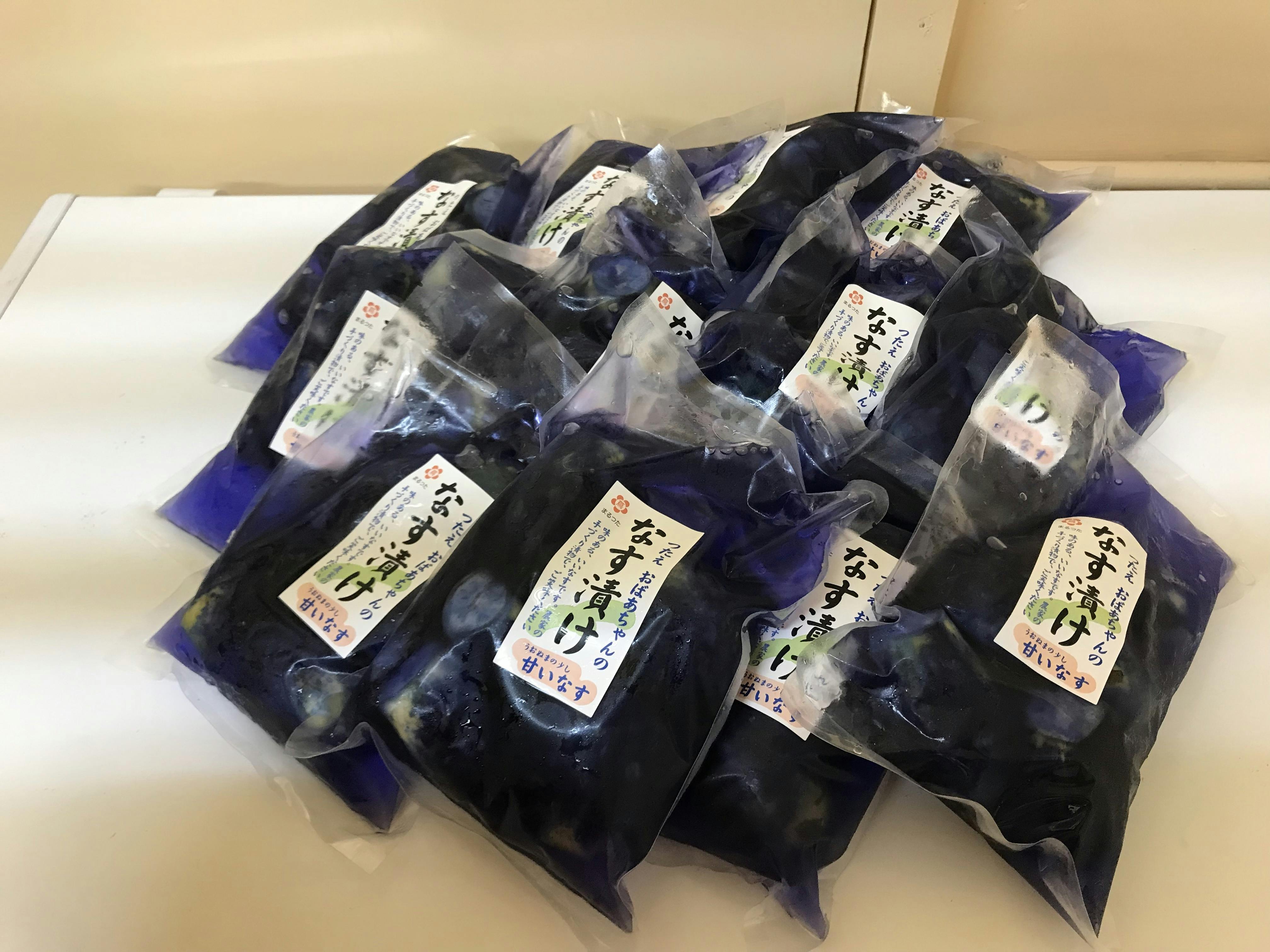 12袋3600円です。240g入りです。水茄子漬(2〜4個入り)つたえおばあちゃんのなす漬け(5〜6個入り)のどちらかが入ります。