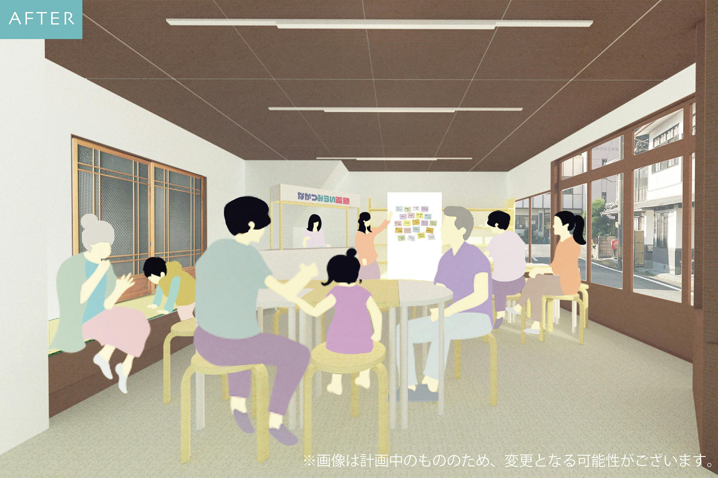 この建物の機能を整えつつ元店舗スペースを、イベントなどで使用できるフリースペースに改修し、さまざまな「学びのコンテンツ」を実施します。