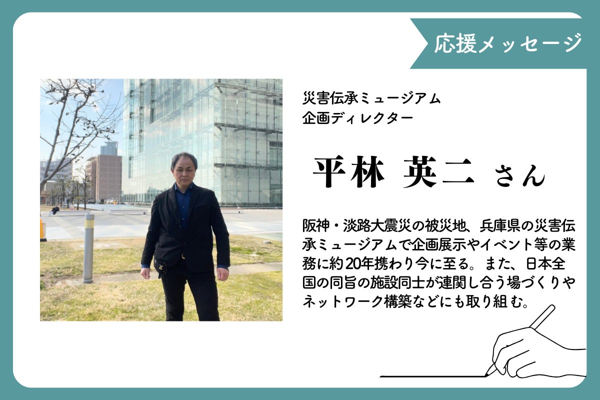 災害伝承ミュージアム 企画ディレクターの平林英二様から、本プロジェクトへの応援メッセージをいただきました。