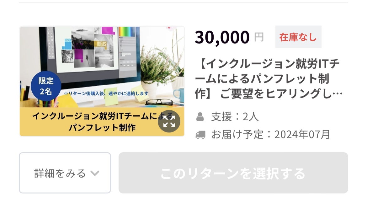 また、この24時間の間に、「インクルージョン就労ITチームによるパンフレット制作(限定数2)」が完売となりました。