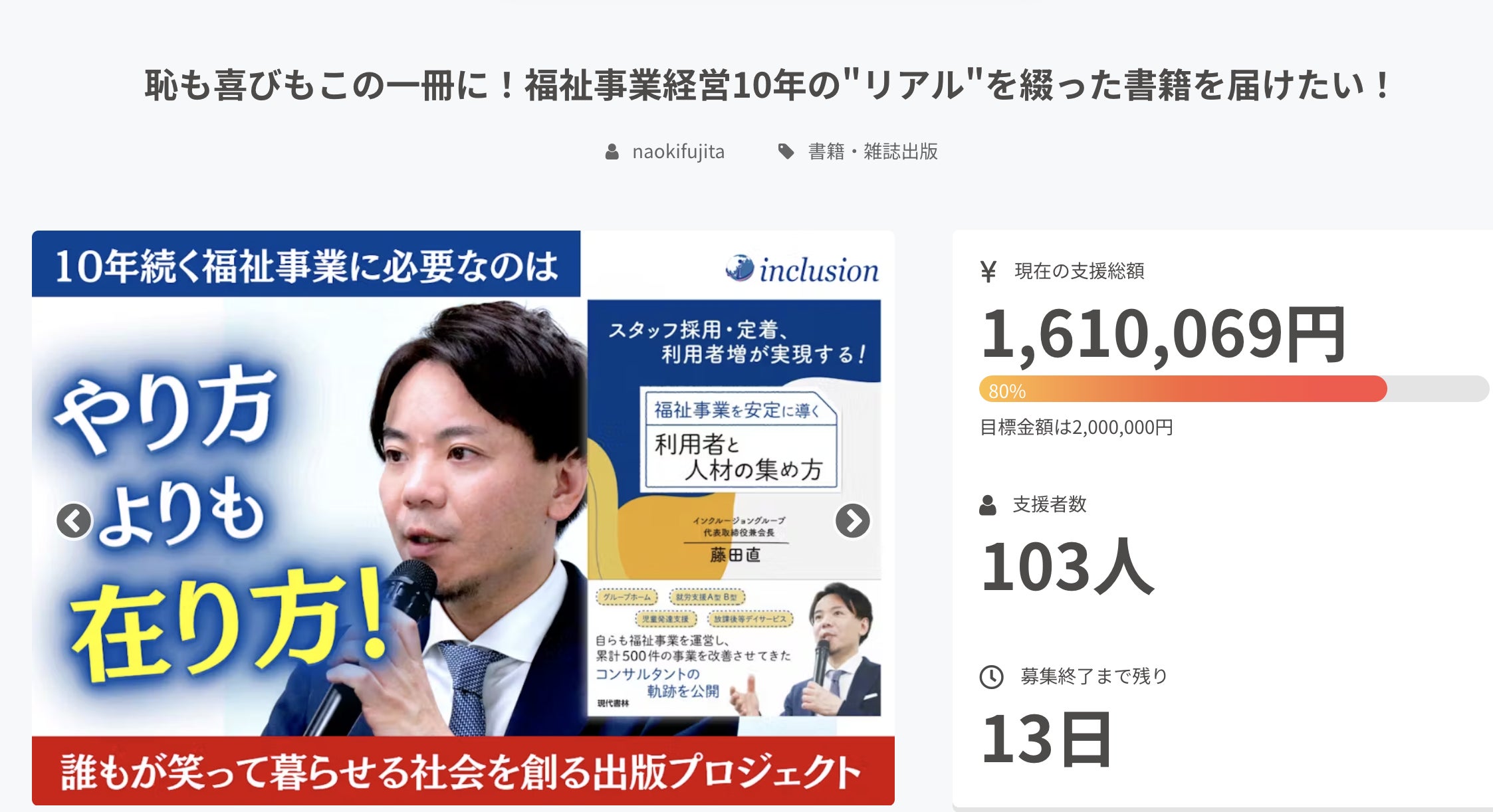 現在、103名からのご支援をいただき、目標達成率が80%となっております!本当にありがとうございます!