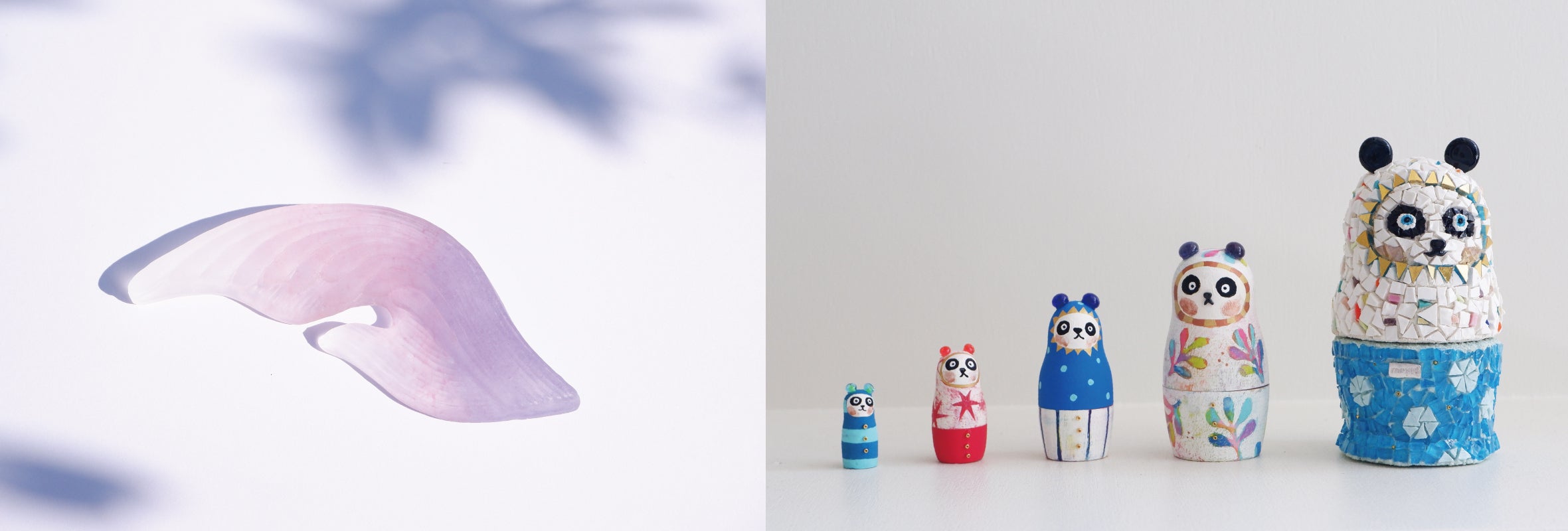 右:見ているといつも笑顔にさせてくれる 小林真理江「パンダマトリョーシカ」