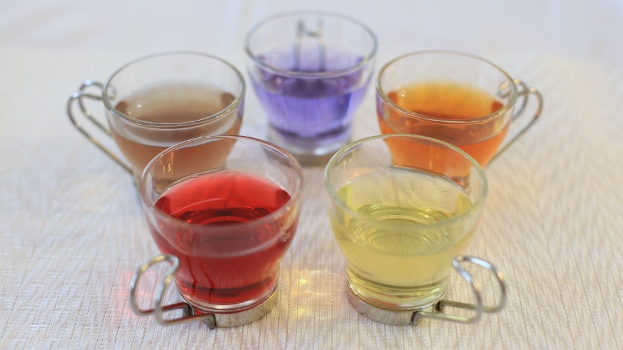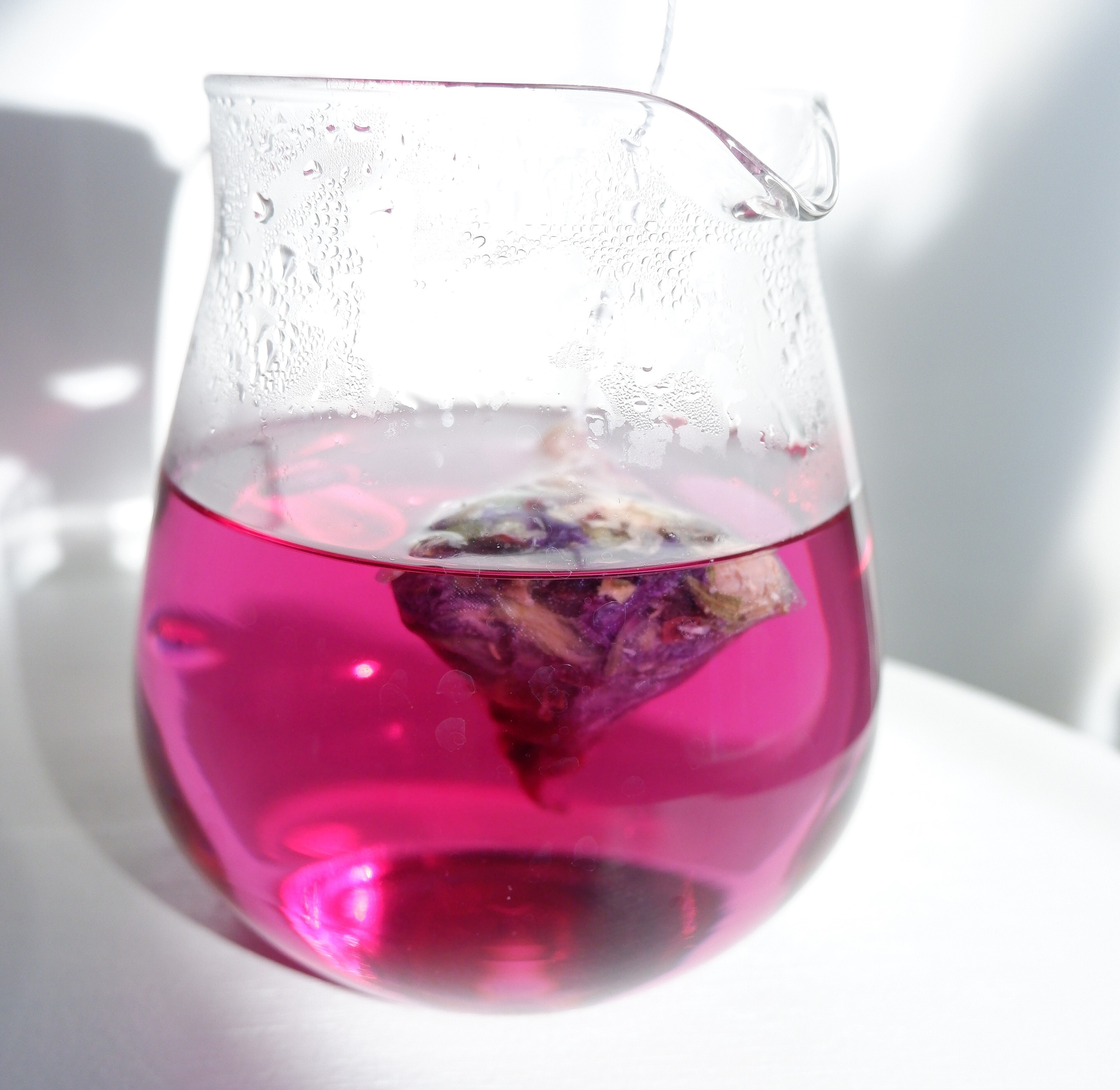 最初はバタフライピーのブルーが少し出てきて、そのあとローズヒップの色と混ざり合い、美しいアズールロゼ色になります。味は癖のない飲みやすいさっぱりした後味で、ローズの良い香りがします。