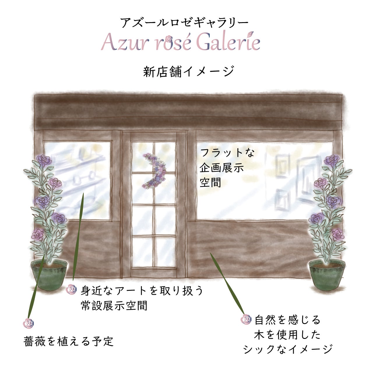 その花言葉どおり、作家さんの夢の実現をサポートしていけるギャラリーにしたいと考えるとともに、私がもし理想の薔薇を見つけたとしたら、名付けるであろう名称をギャラリー名にしました。