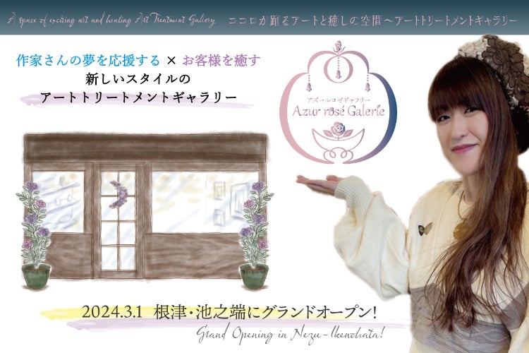 Azur rosé Galerie(アズールロゼギャラリー)では、美術館のように常時取り扱う作家さんの常設展示と、月に1回期間限定で行う企画展示を実施しています。日本人が持つ独自の感性や美意識を感じさせる作家さんを今後も取り扱うとともに、「創の実」でたくさんのお客様とお話して得られた「癒し」をキーワードに、「ココロ踊るアートと癒しの空間~アートトリートメントギャラリー」をコンセプトに運営していきます。