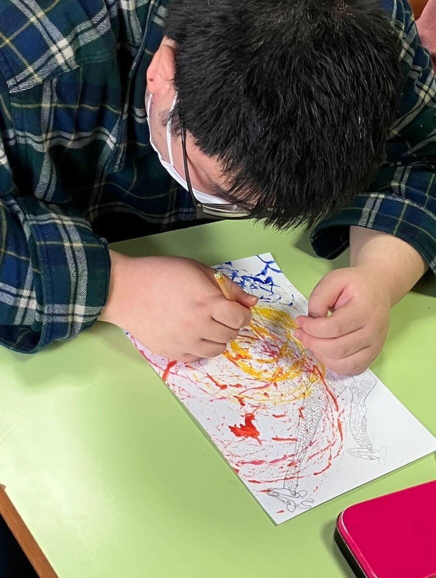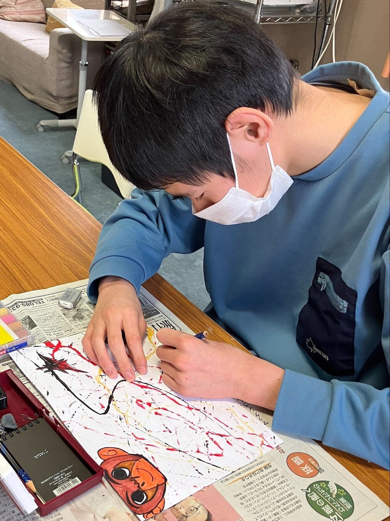 一本一本マーカーを持ち替えて塗り進めていく二宮さんですが、実はこの施設に来るまでは、これほど色鮮やかな絵を描いたことはなかったそうです。