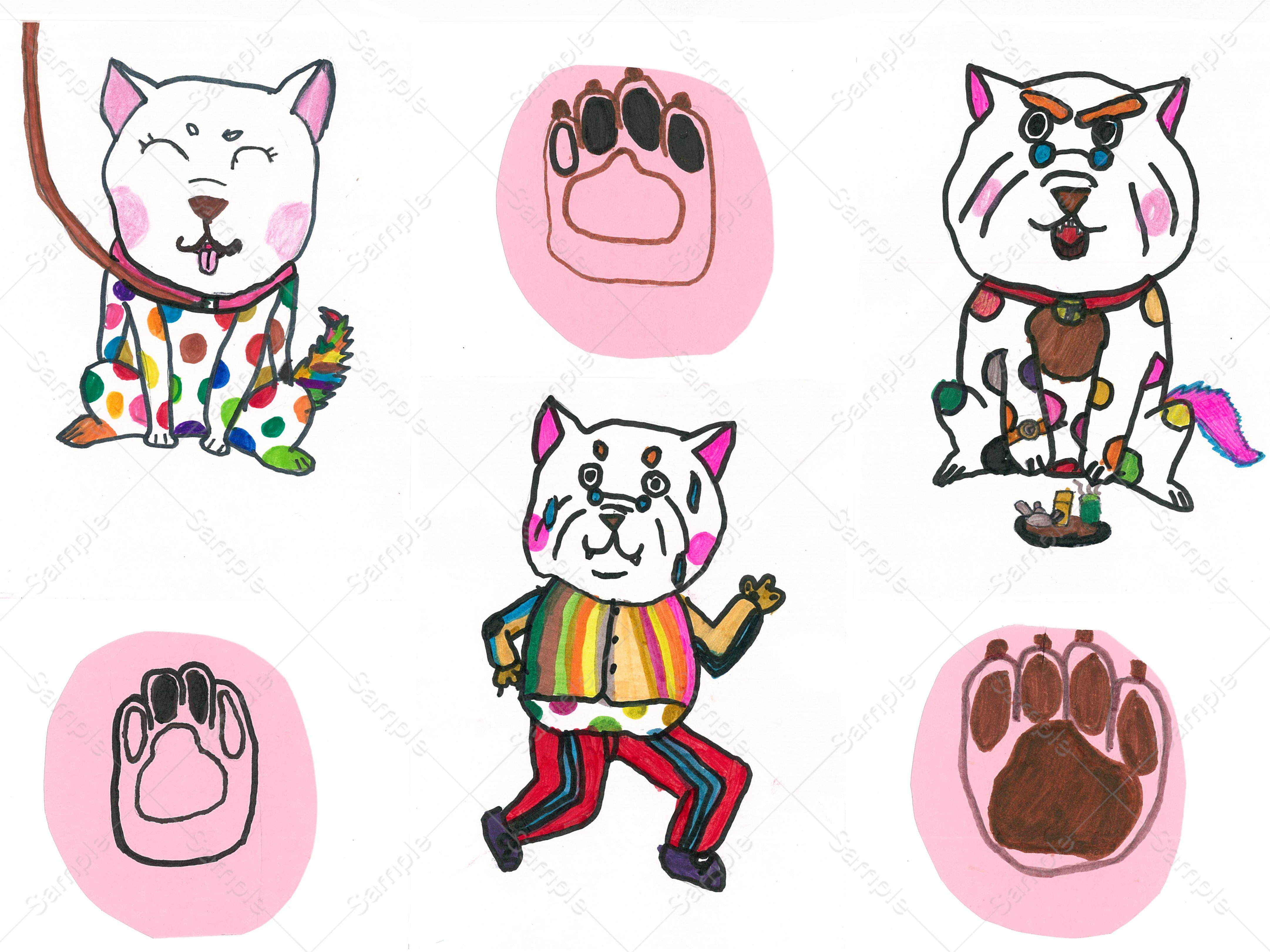 こちらの絵は、おじいちゃんになるまでずっと一緒にいた、今は亡き愛犬のハクちゃんです。森岡さんの描いたハクちゃんの絵は、「九谷焼の絵の具で作られたシールを貼って、自分だけのオリジナルな九谷焼をつくる」という、ディスカバリーアートワークショップの図柄にも採用されました。
