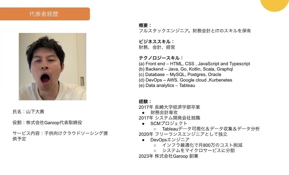 また、子供向けのWebサービスを全国、世界に広げていくためには代表自身の信用力はとても大切です。