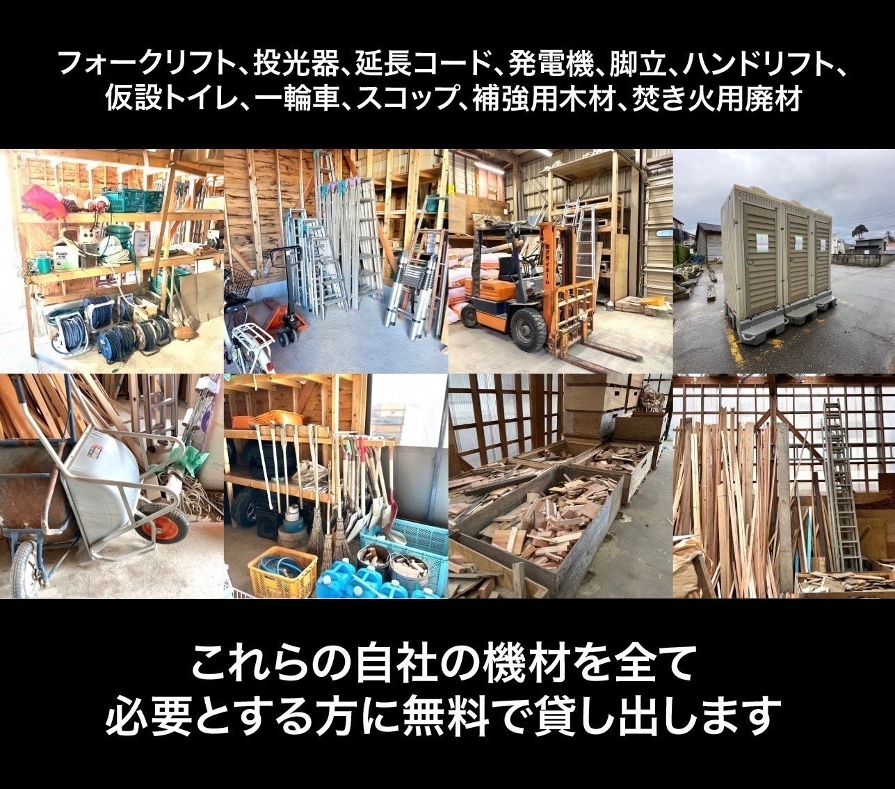 会社の倉庫には道具や資材、近隣の皆さんの役立つ物が沢山あり、無料の貸し出しなどで微力ながら地域内での支え合う復興を歩み出しておりました。