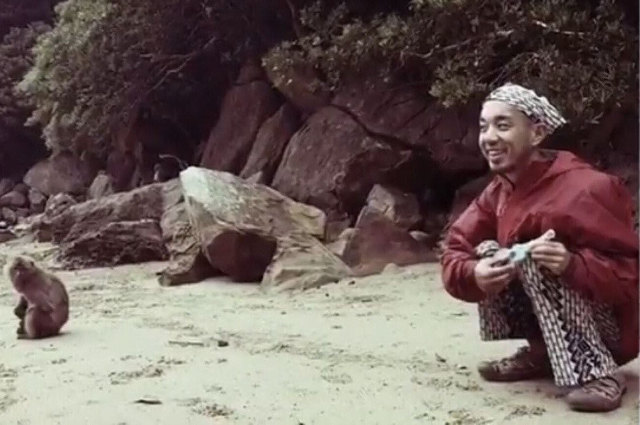 百匹目の猿現象発祥の地、宮崎県串間市幸島で野生の猿と遊ぶ野良勝巳ちゃん