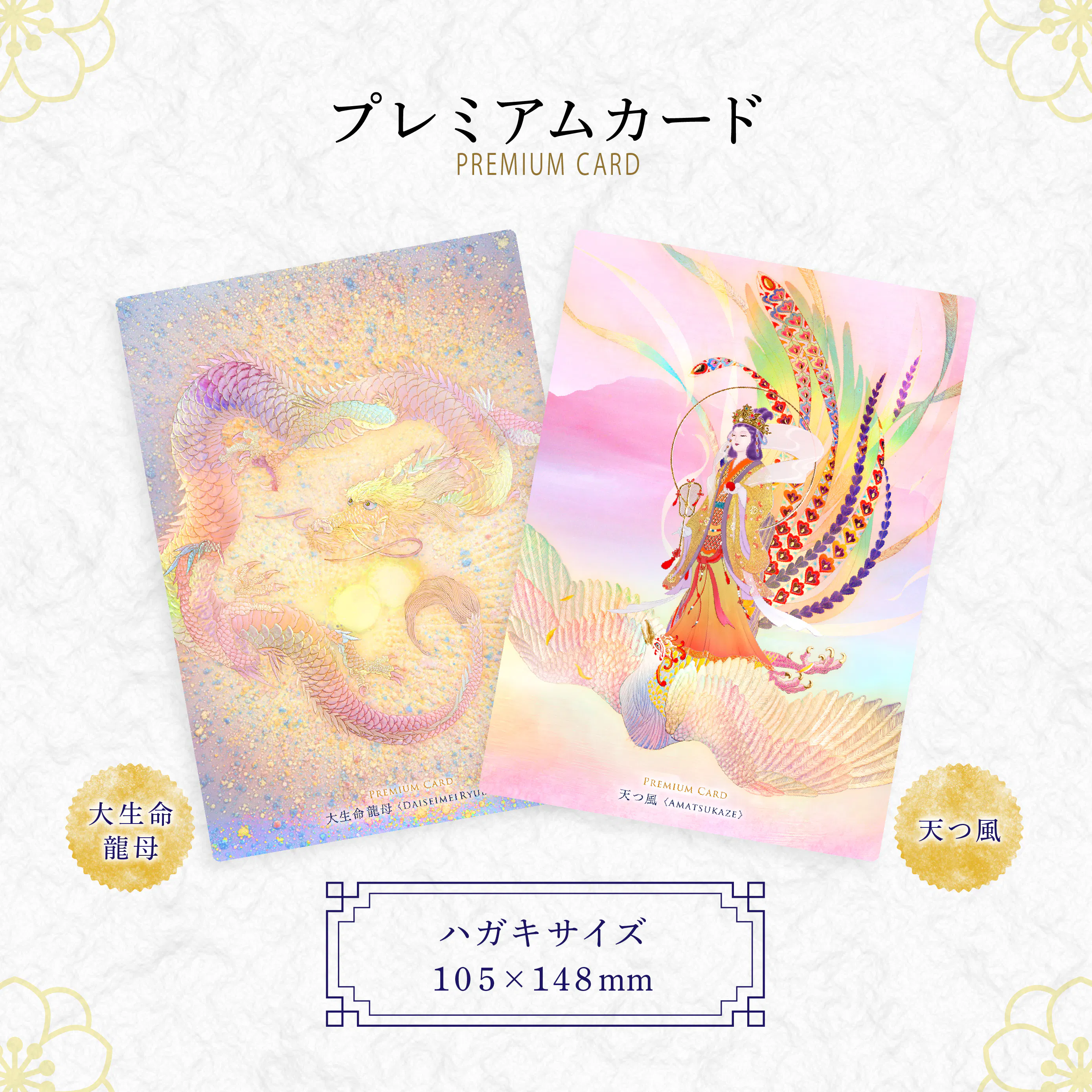 草場さんより、非売品のプレミアムカード2種(大生命龍母・天つ風)をご提供いただきました。こちらは、全てのリターンに含まれています。