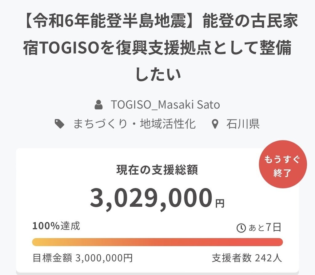 みなさまからの応援を受け、集めた資金を使い、みなさまを代表して能登の復興へ向けて邁進し、安心して遊びに来られるよう整えておきます。もちろん僕も一緒に楽しみます!