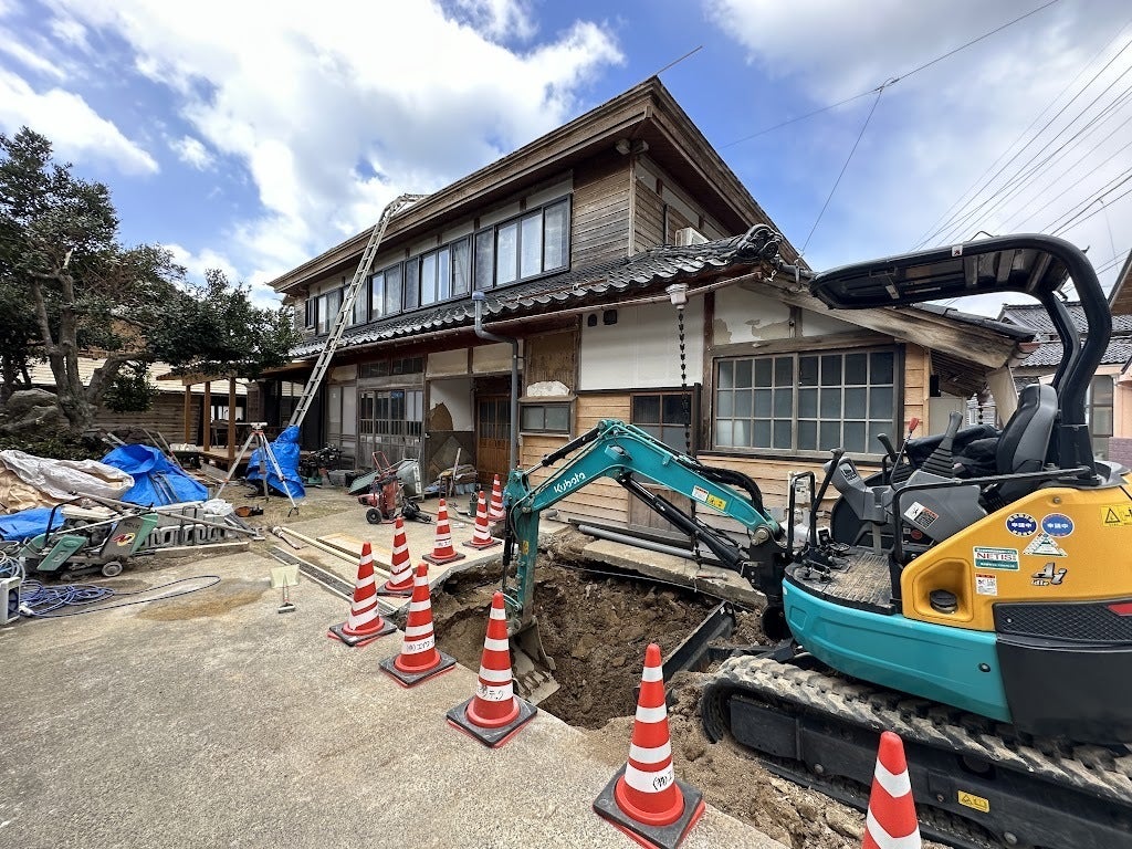 TOGISOの佐藤です。大阪から職人と現場監督が遠征に来てくれ、浄化槽の設置とトイレの増設工事がはじまりました。