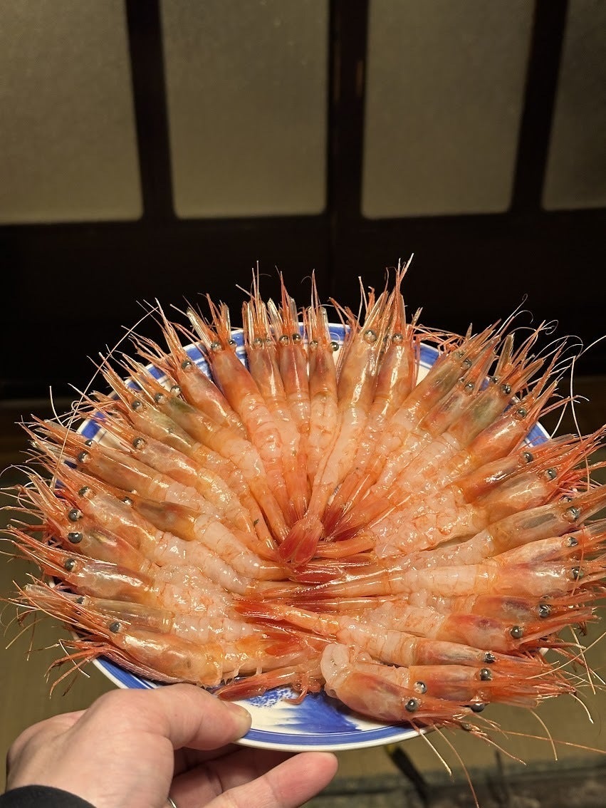 地元の漁師さんから差し入れを頂きました。すぐ近くの西海漁港で水揚げされた大きな甘エビ。
