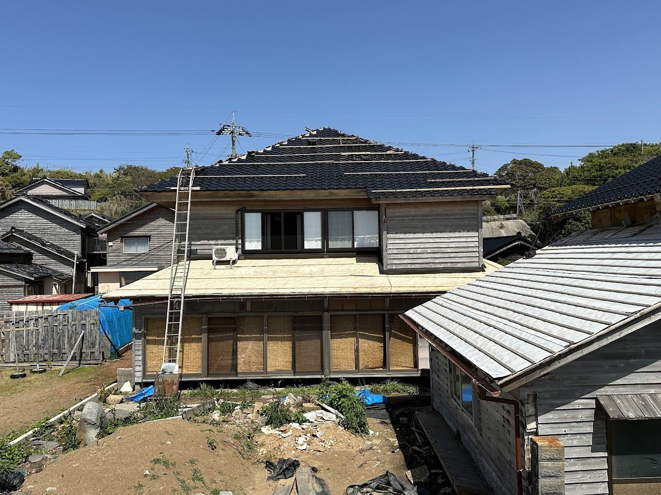 ついに瓦が納品され、屋根工事が再開されました。