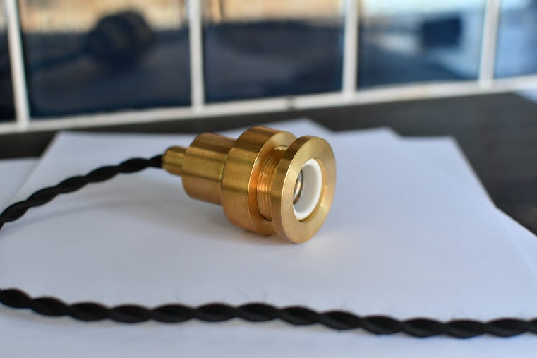 ソケットの開発は愛知県みよし市の金属加工会社、進興金属工業株式会社様に灯具製作のご協力をいただいております。真鍮削り出しで大平椀の曲線に合うようデザインされています。