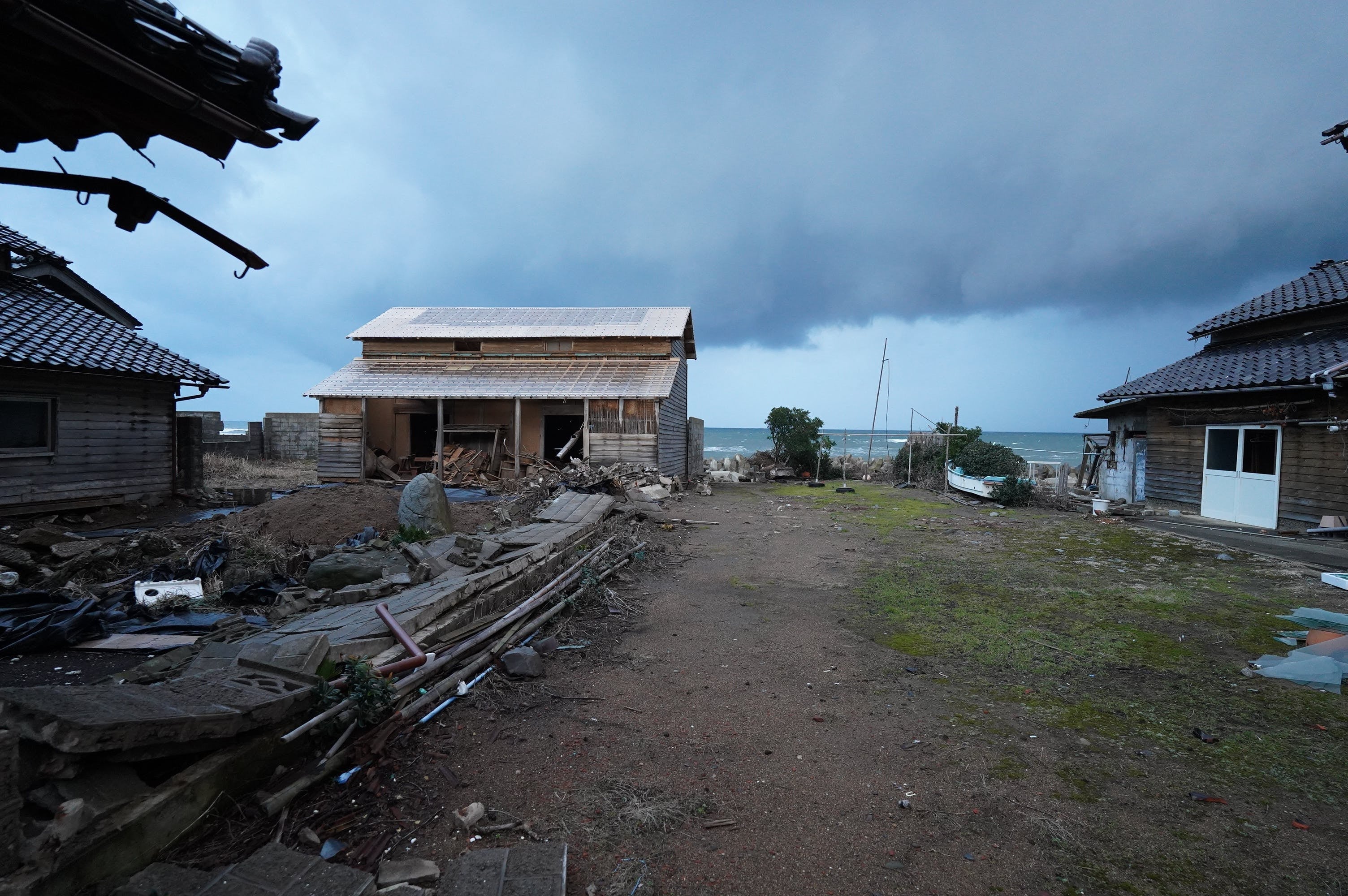 2024年1月1日、令和6年能登半島沖地震が起きました。震源に近い志賀町赤崎は震度7を記録し、多くの家屋が被災しました。地震直後に4.2mの津波も押し寄せましたが、奇跡的に街並みを形成する建物は残っています。地震後 2024年1月6日撮影 志賀町赤崎集落