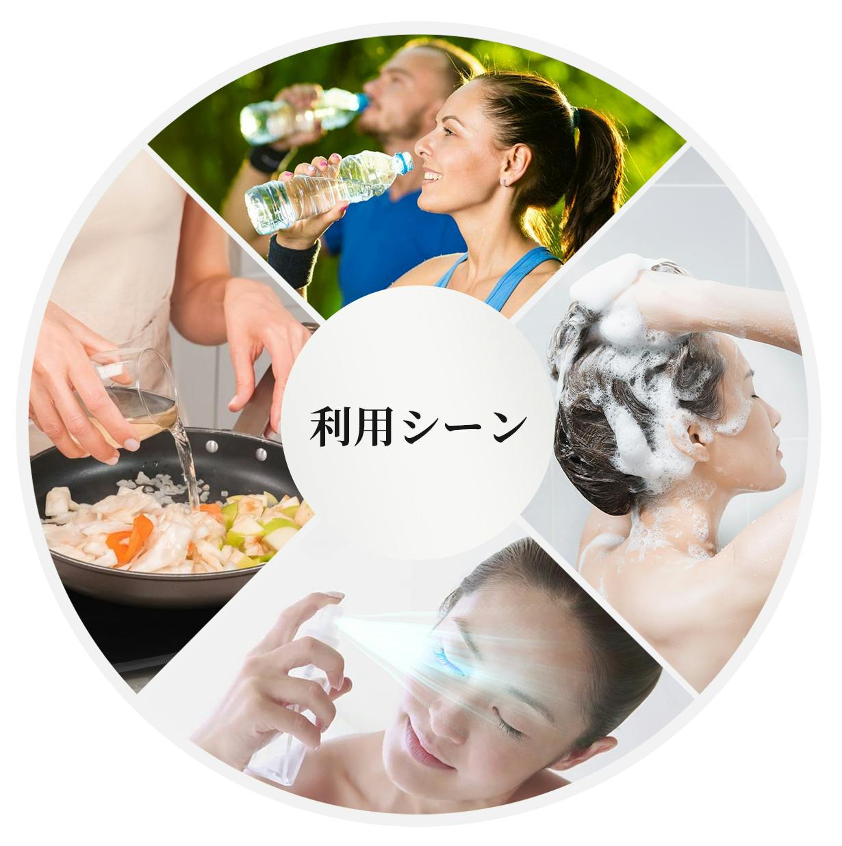 運動後の補水、肌の保湿、髪洗うこと、料理の水など・・・