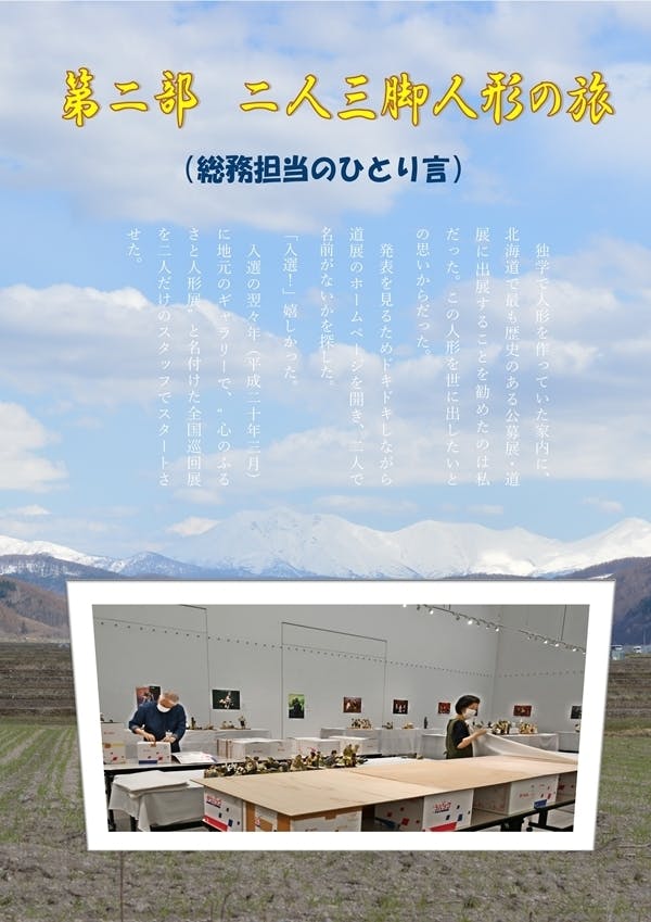 第2部‥高度成長期に上京し、そして出会い結婚したごく普通の夫婦が、人形展を開催しエンタメ業界の片隅で活動し、そこでの経験を綴ったエッセイ集。