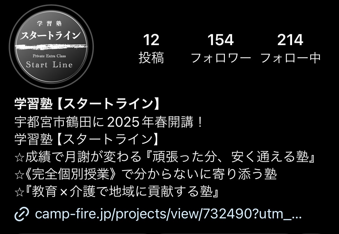 わたしたちは2025年4月に宇都宮市鶴田に学習塾【スタートライン】を開業する予定です。