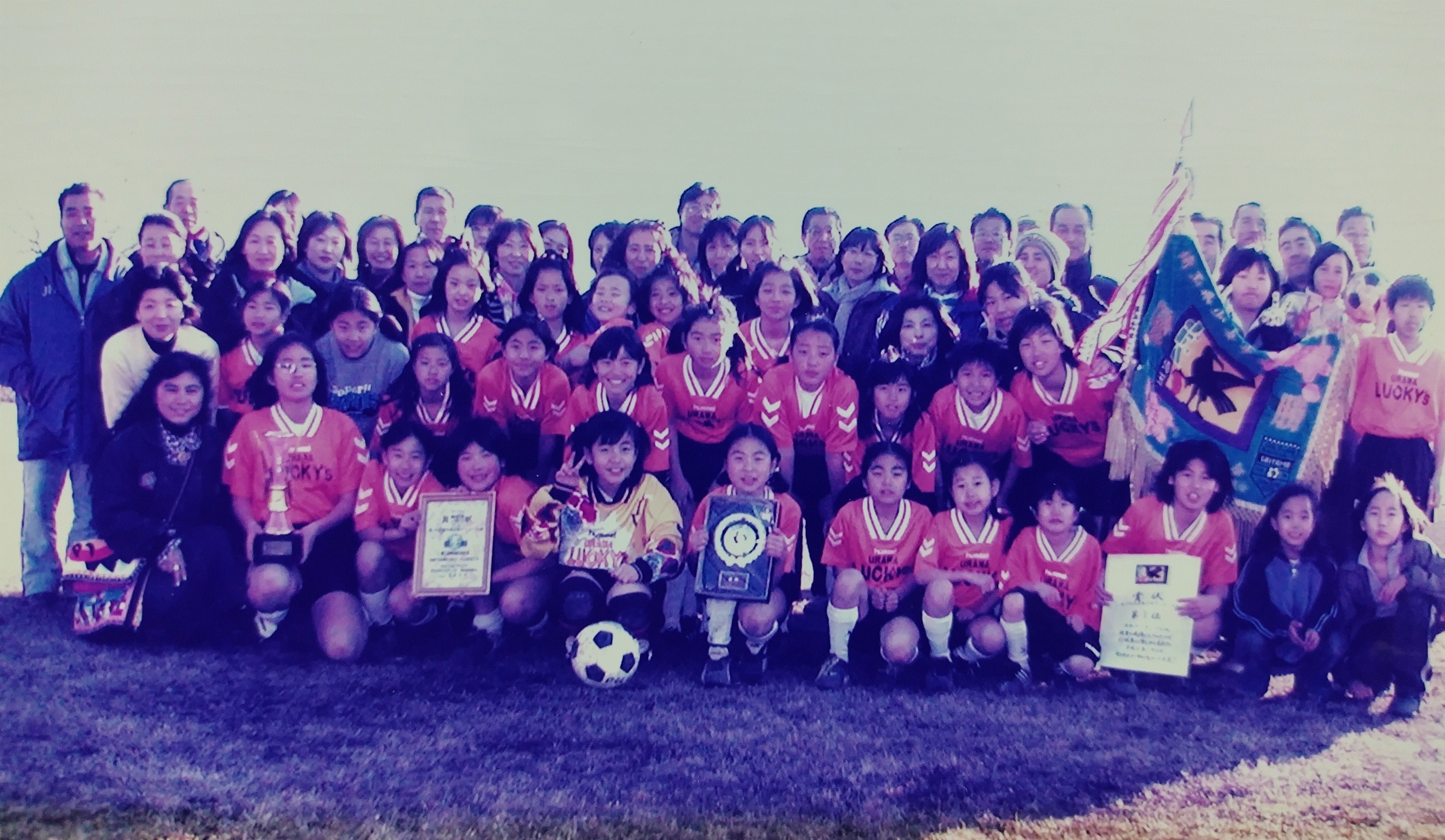 最初は練習会だけのつもりで始めましたが、練習を重ねるうちに人数もそろい、1999年春、『浦和ラッキーズフットボールクラブ』というチーム名で(現)埼玉県U-12サッカー連盟少女協議会へ正式加盟しました。