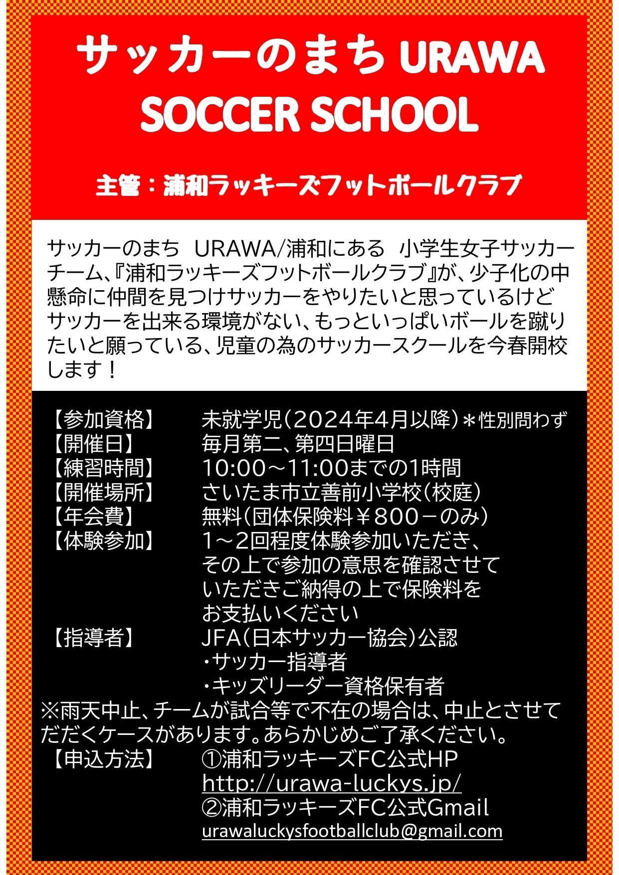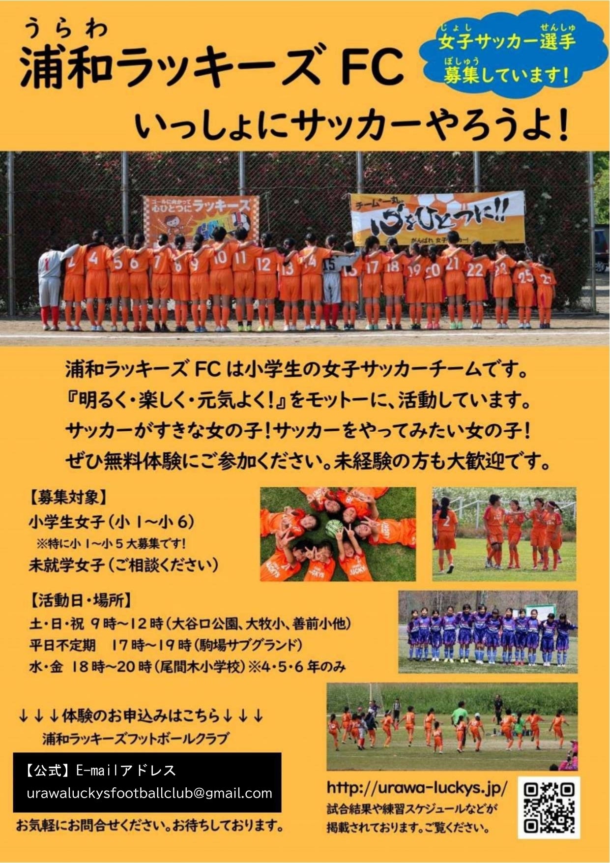 公式 E-mailアドレス urawaluckysfootballclub@gmail.com