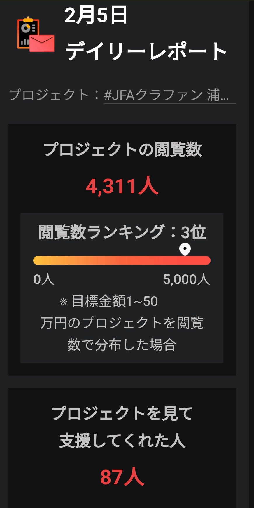 4000人以上の方に私たちのプロジェクトをご覧いただき、87人ものご支援を頂戴いたしました。