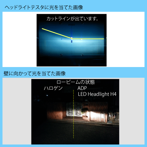 壁に向かってヘッドライトを照射すると、上の画像のようにピシッとカットラインが出ます。 現状でもこのレベルまで仕上げることができました。