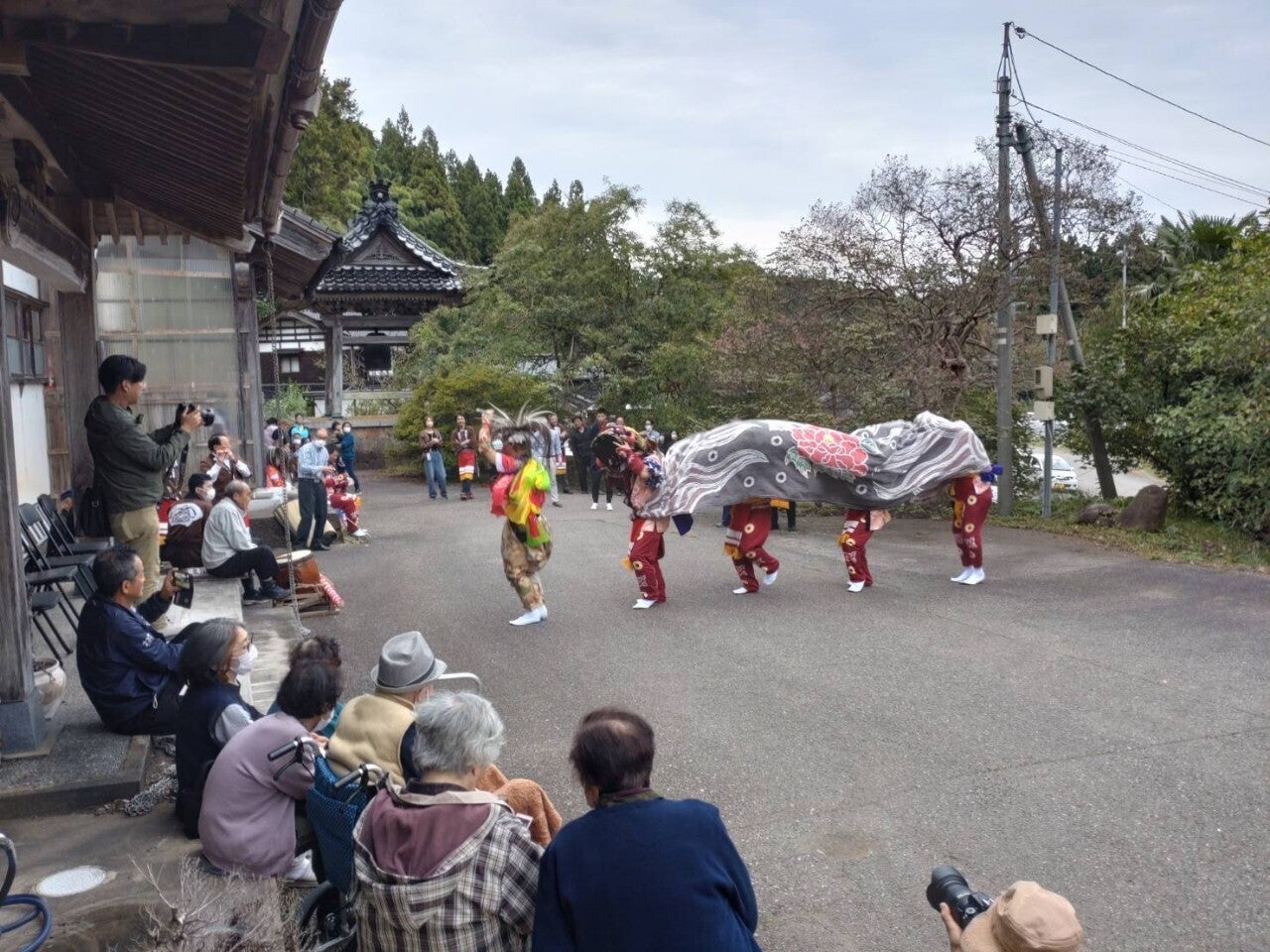 地域に古くから伝わる獅子舞輪島市門前町にある徳善寺は、平家の落ち武者としてこの地に隠れ住んだ祖先が、出家して真言宗のお寺を建てたといわれております。1504年に浄土真宗に転じてから600年以上にわたり信仰の拠り所として地域に根差し、集落の皆さまと苦楽を共に歩んでまいりました。