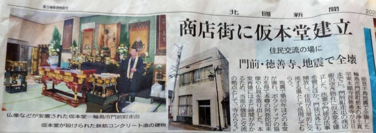 私たちの自坊(寺)である石川県輪島市の徳善寺も被災し、敷地内のすべての建物が全壊してしまいました。周りを見渡せばどの家も倒壊しており、ほんとに言葉も出てきません。