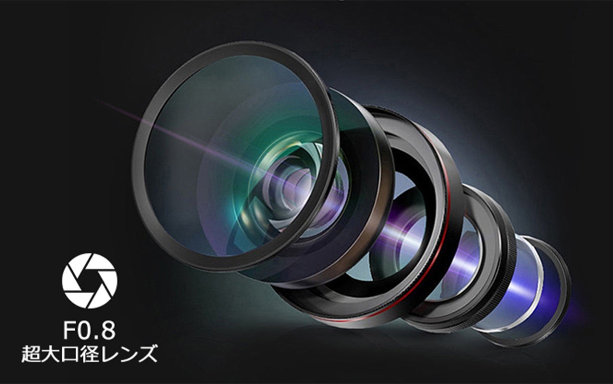 F0.8超大口径レンズの採用により、レンズから入る光量が充足!