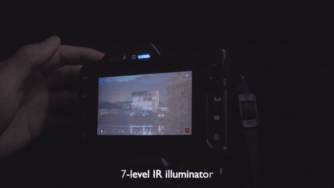 赤外線ライトが内蔵されており、全く光が届かない場合では、赤外線モードに切り替え、真っ暗な景色をきれいに映します。