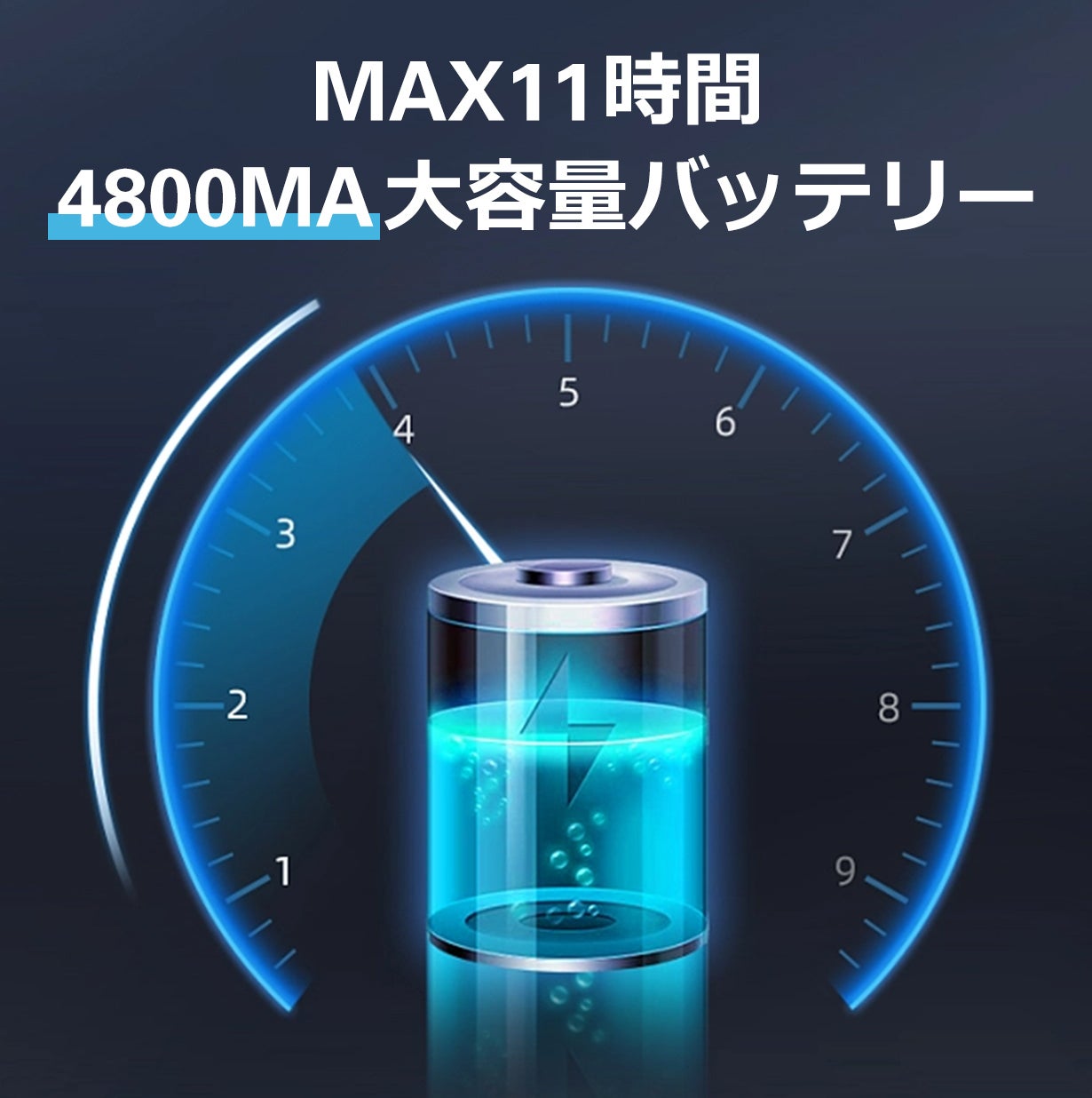 4800mAの大容量バッテリーが内蔵され、最大11時間撮影でき、赤外線ライトを使う場合は最大4.5時間撮影できます。時間を気にせず、撮影の楽しさを満喫できます。