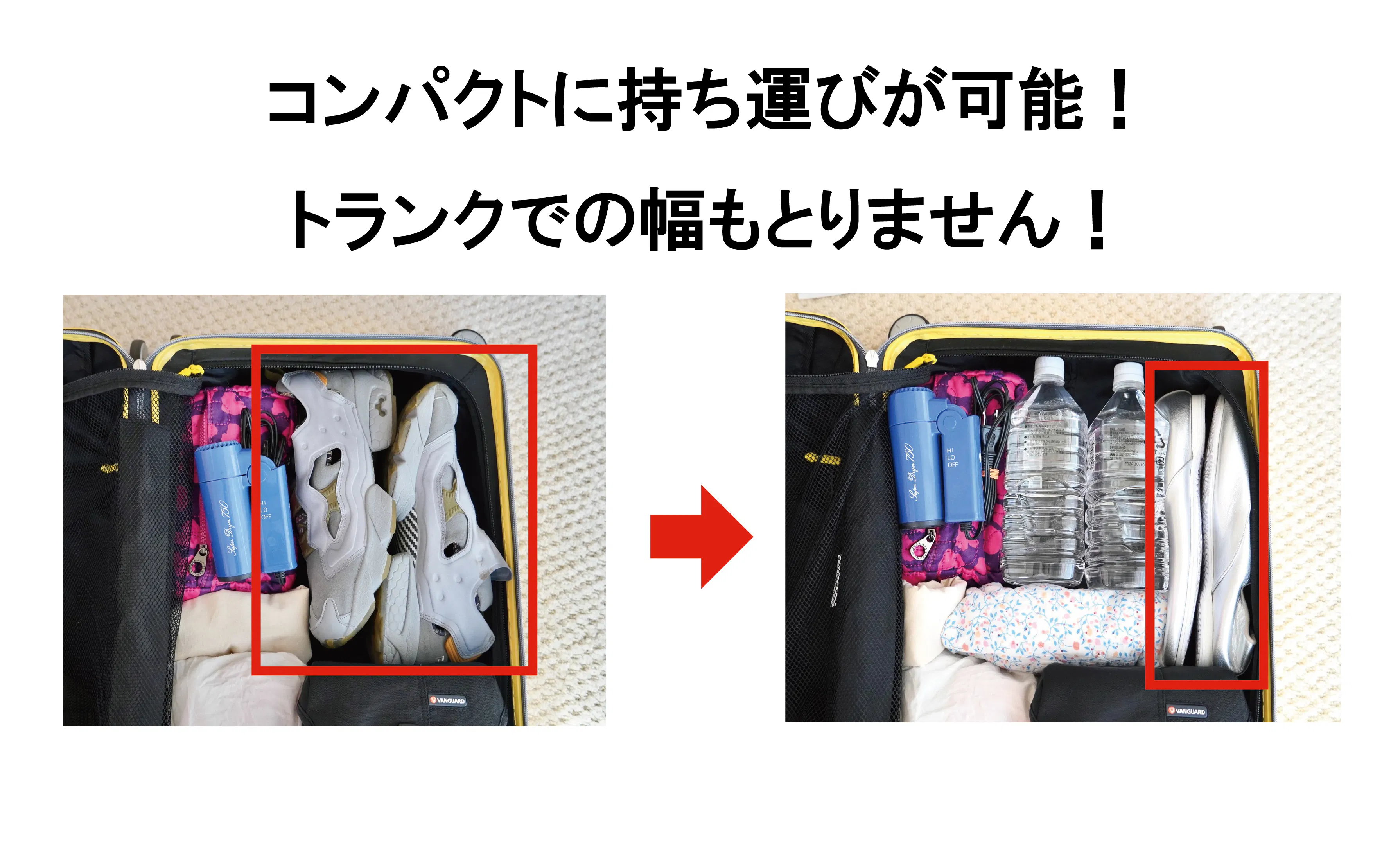 芯が無いことにより型崩れの心配なくコンパクトに持ち運びが可能です
