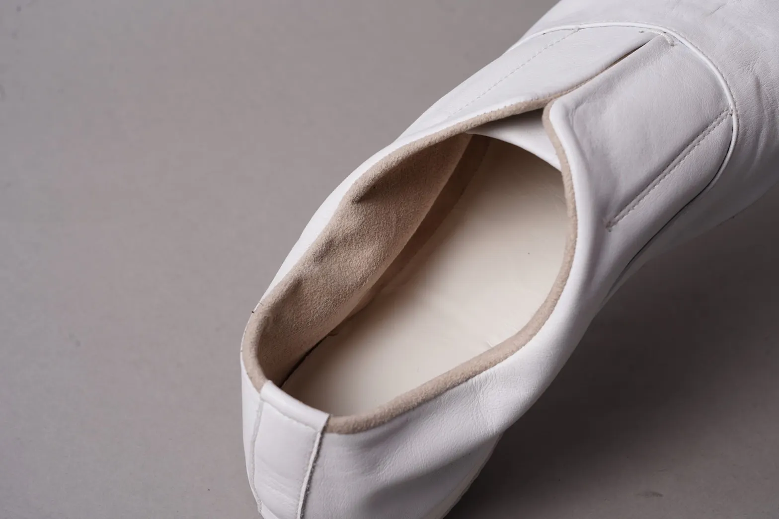 この製法は裏革(ライニング)と中敷きの周囲を袋状に縫い合わせることによって、ソックスを履いたように足にフィットし、柔らかく包みこまれる履き心地を実現します