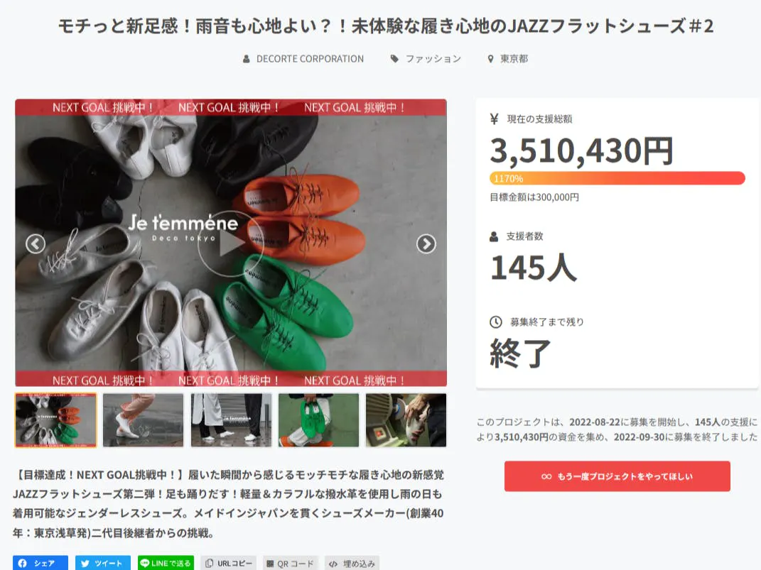2026/01/21 12:00CAMPFIREの皆様!ご無沙汰しております。1/23(金)12時~CAMPFIREにてプロジェクトをスタートします。まるでソックスに包み込まれるような未体験な柔らかさとモッチモチな履き心地はそのままにクラシックなスニーカーになって登場!正直面倒くさい靴紐タイプの脱ぎ履き・・・なんと!ゴム紐で伸びるから着脱が楽ちん!運動靴だとコーディネートがカジュアルになりすぎちゃう・・だからって革靴だと重くて痛くて無理!と感じているあなたへ運動靴以上革靴未満のシンプルなジェンダーレススニーカーです。【ゴム紐で楽ちん脱ぎ履き!】モチっと新足感!JAZZクラシックスニーカー#2https://camp-fire.jp/projects/913782/view1/23(金)12時~CAMPFIREにて先行販売スタートです。公開したらメールでお知らせ『お気に入り登録』をご利用ください。最大30%OFFのCAMPFIRE限定価格にてお届け!みなさまの応援いつも励みになっております。どうぞよろしくお願いします。SNSでのシェア、お知り合いへの紹介等、よろしくお願いします!有限会社デコルテ田中佳李台東区浅草5-67-8●公式LINE●https://lin.ee/CGH2nQs●インスタグラム●https://www.instagram.com/je_temmene/?hl=ja もっと見る