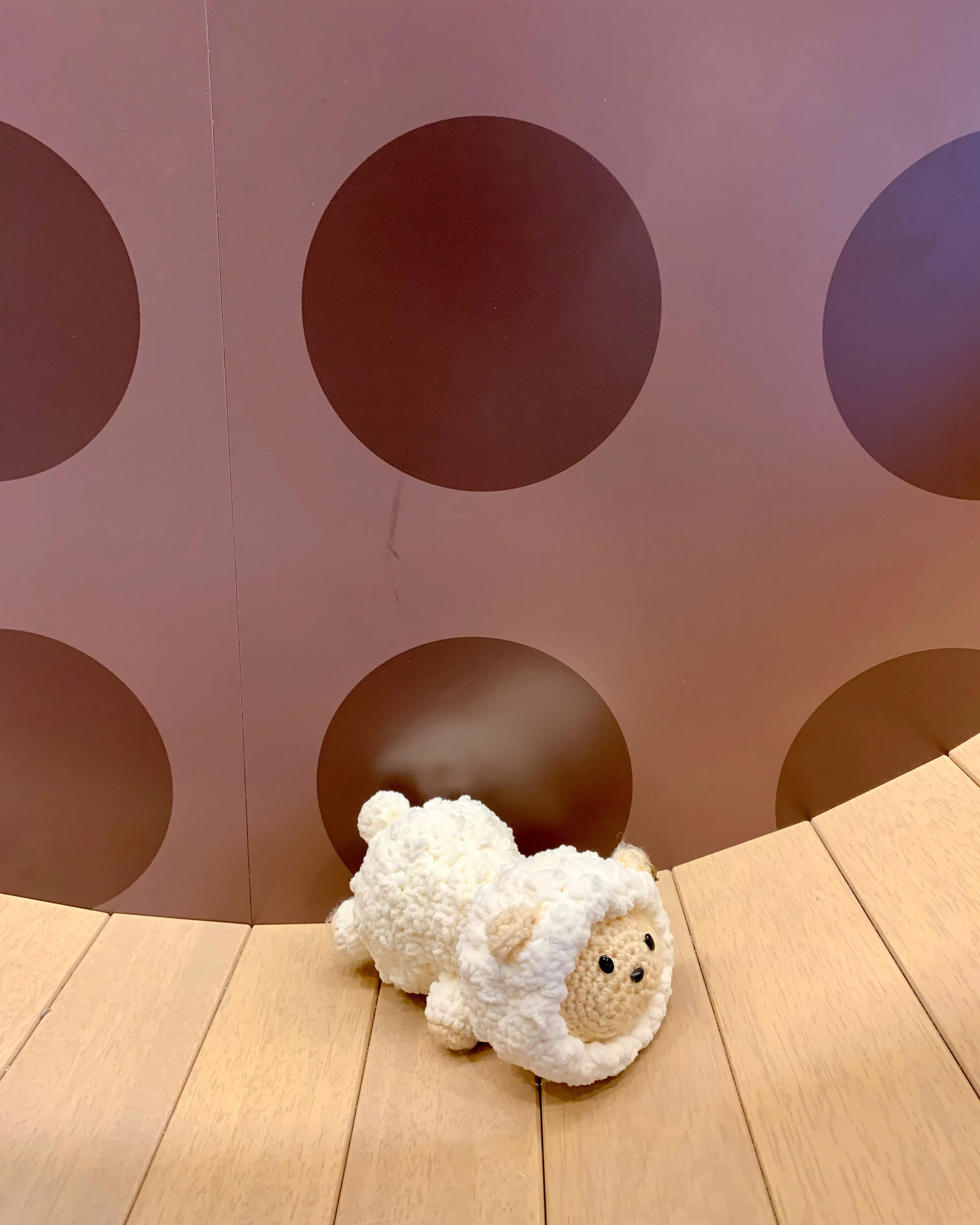 幸せを呼ぶ羊さんは「小児がんや重病の子どもたちに編みぐるみを贈ろう」プロジェクトのために完全オリジナルでデザインしました。(難解な編み方も使用しています。)羊にしたのは、羊が「かわいい、やさしい 、おとなしい、ふわふわ、やわらかい」という印象を持っているからです。沢山の動物園や美術館、図書館などを訪れデッサンを繰り返し設計図(あみ図)を製作しました。また実際に動物園で羊を見たときに「ずっしりしている」という印象も受けました。