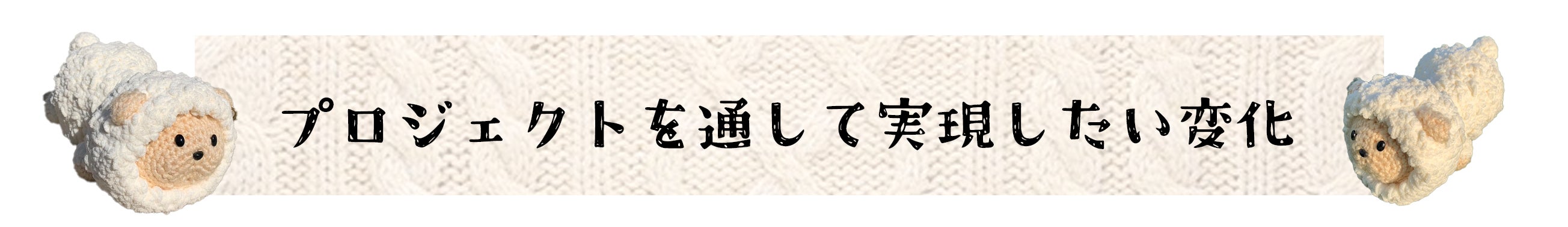 そして1日に何回も「そんな子どもたちのために、私に幸せを呼ぶ羊さんを作り贈らせてください!」と祈ります。また、このプロジェクトを通して、少しでも多くの重病の子どもたちの笑顔が増えて欲しい。子どもたちに、喜びと安心、そして生きる力をプレゼントしていきたい。 沢山の小児がんの子どもたちや、小児がんを克服して新たな人生を歩み出している小児がん経験者の方々、あなたの「熱い思い」と「祈り」が必要です。