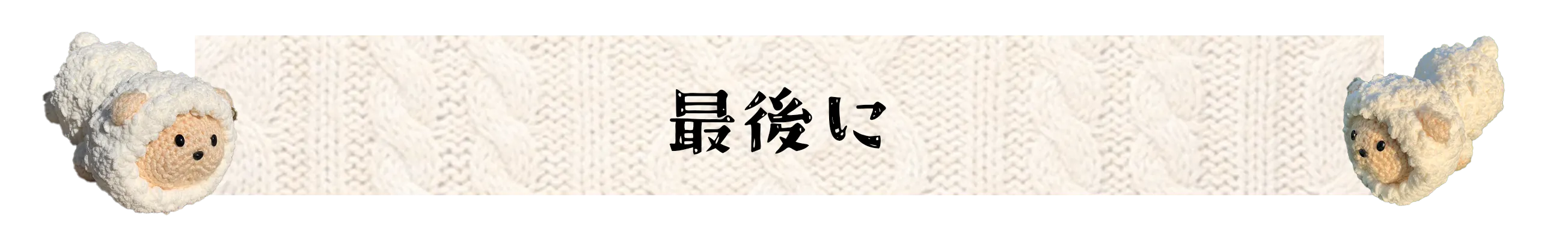 編み物歴は20年、作品数は1000作品を超えました。2021年に治療費の足しにと「編みぐるみ」の販売を始め、これがとても好評で沢山の方に購入いただき、この2022年では1年で178作品を製作、販売するに至りました。いちからデザインして設計、製作する編みぐるみは「品がある」、「かわいい」と大好評です。 編みぐるみを製作して、沢山の方にもらっていただき、喜びの声が返ってくることは本当に幸せなことであり、辛い大腸癌の治療を耐え抜く力となっています。