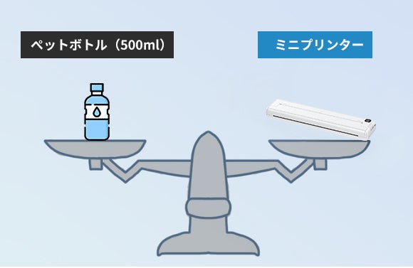 このミニプリンターは重量がわずか475gで、500mlのペットボトルよりも軽いです。