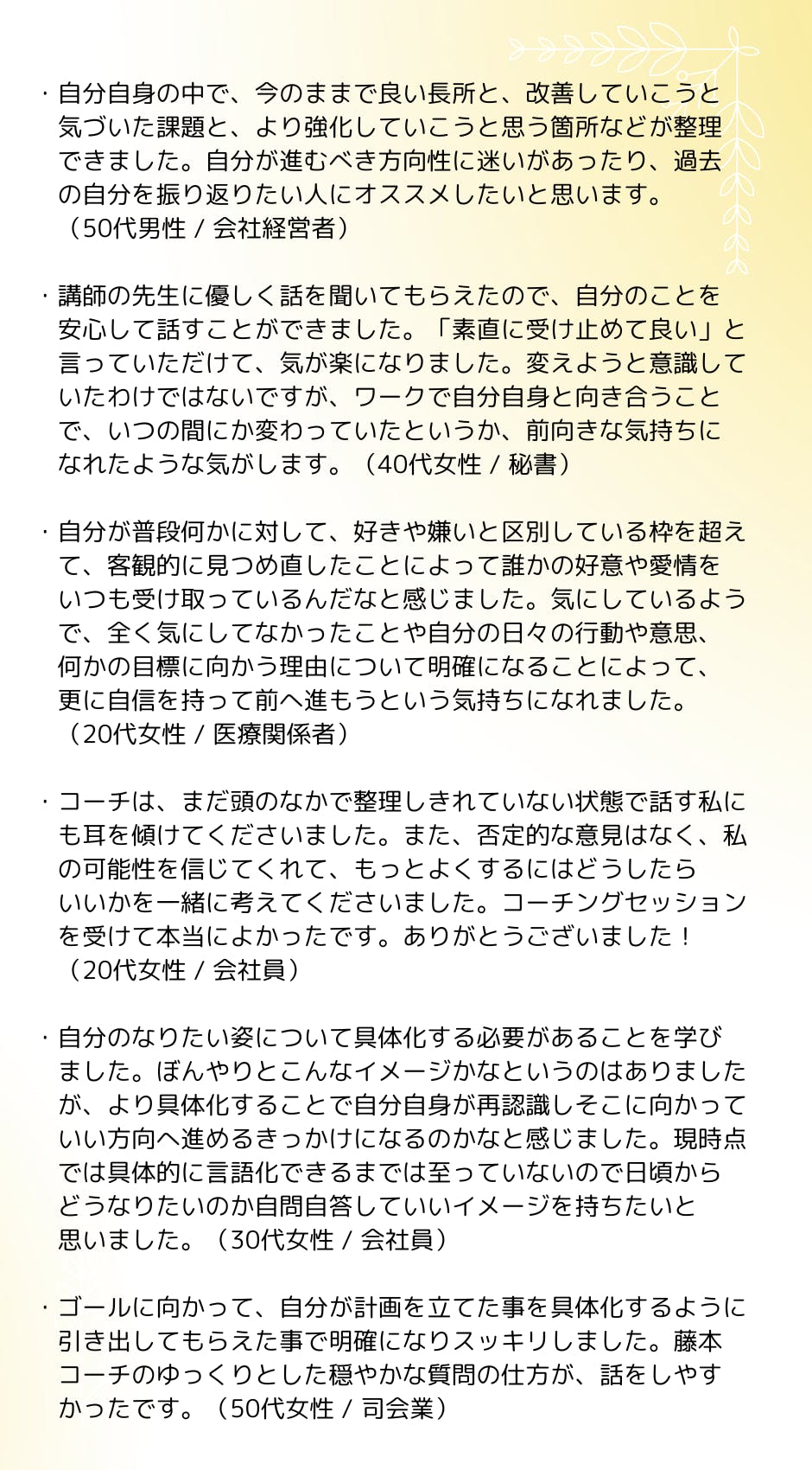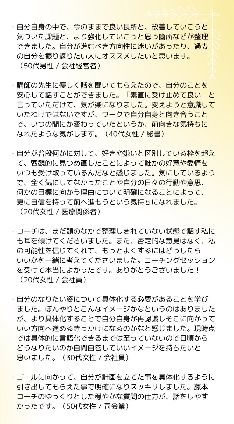 「ゴールや計画を具体化するように引き出してもらえたのでスッキリした」