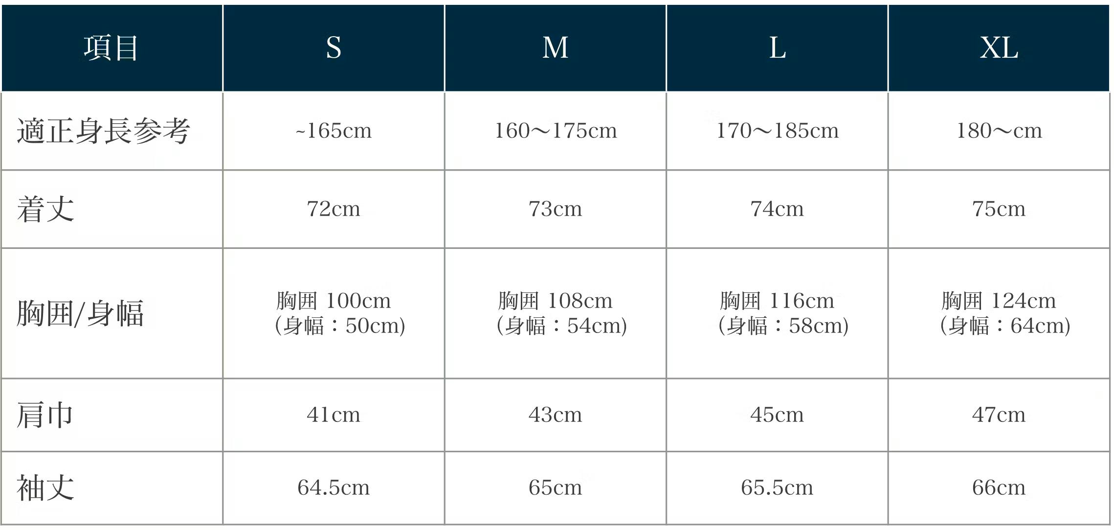*目安ご自身の胸囲を測っていただき、胸囲10cm〜115cm程度の余裕があれば安心です。