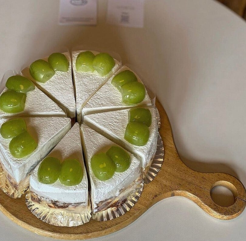 西原スタジオ様に当園のシャインマスカットをチーズケーキに使用頂きました。