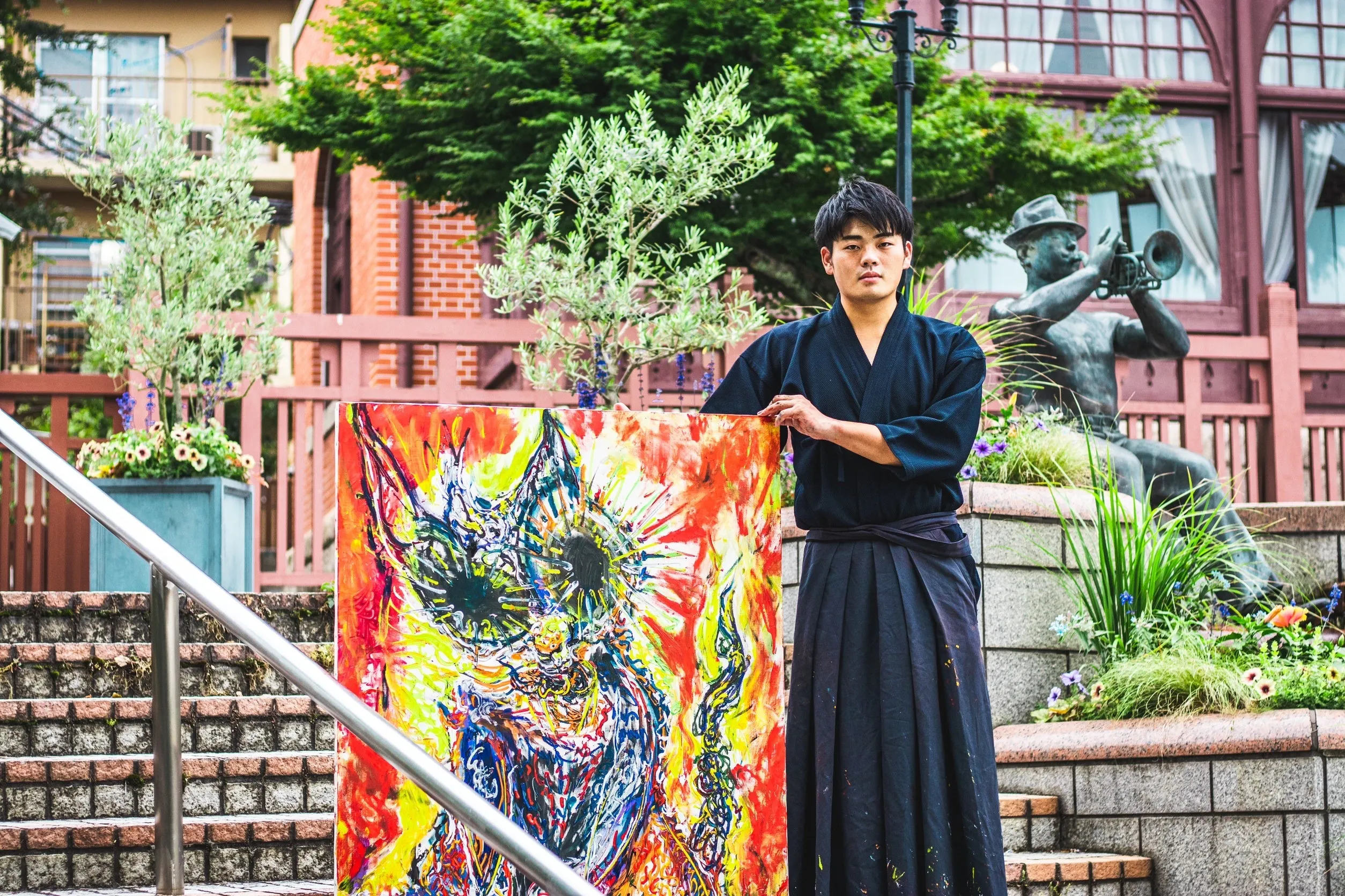 現在は作品制作含め、全国の寺院やイベント会場やまちづくりを通して全国最大のライブペインターを目指して日々精進しております。